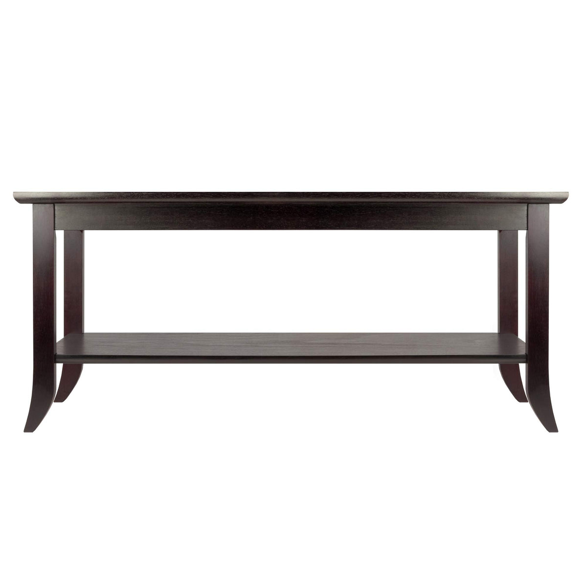 Winsome Genoa Rectangular Coffee Table with Glass Top And Shelf, Espresso