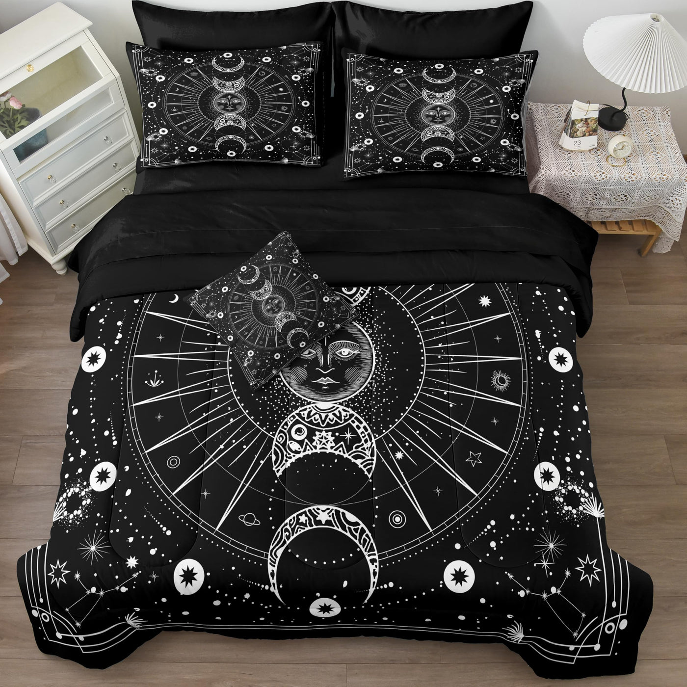Bedbay Sun And Moon Comforter Set Queen Size Boho Hippie Bedding,Trippy Cosmos Celestial Decor Soft Cozy Galaxy Bed Set 8 Pcs Qu