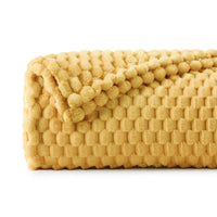 Bedelite Fleece Twin Blanket For Couch & Bed - 3D Jacquard Decorative Yellow Blanket, Super Soft And Cozy Warm Fuzzy Blanket All
