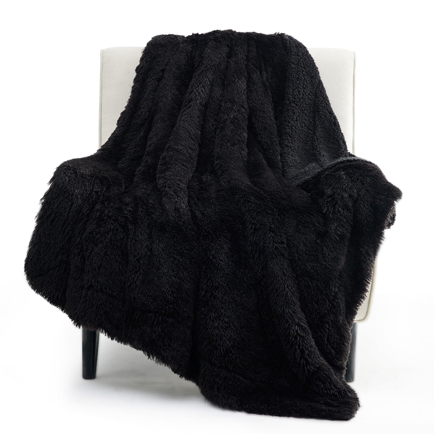 Bedsure Faux Fur Twin Blanket Black - Fuzzy, Fluffy, And Shaggy Faux Fur, Soft And Thick Sherpa, Cozy Warm Decorative Gift, Twin