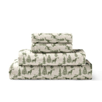 Brielle Home Flannel Sheet Set Cotton Soft Warm & Cozy Modern Chic With Elastic Deep Pockets, Full, Deer Ivory
