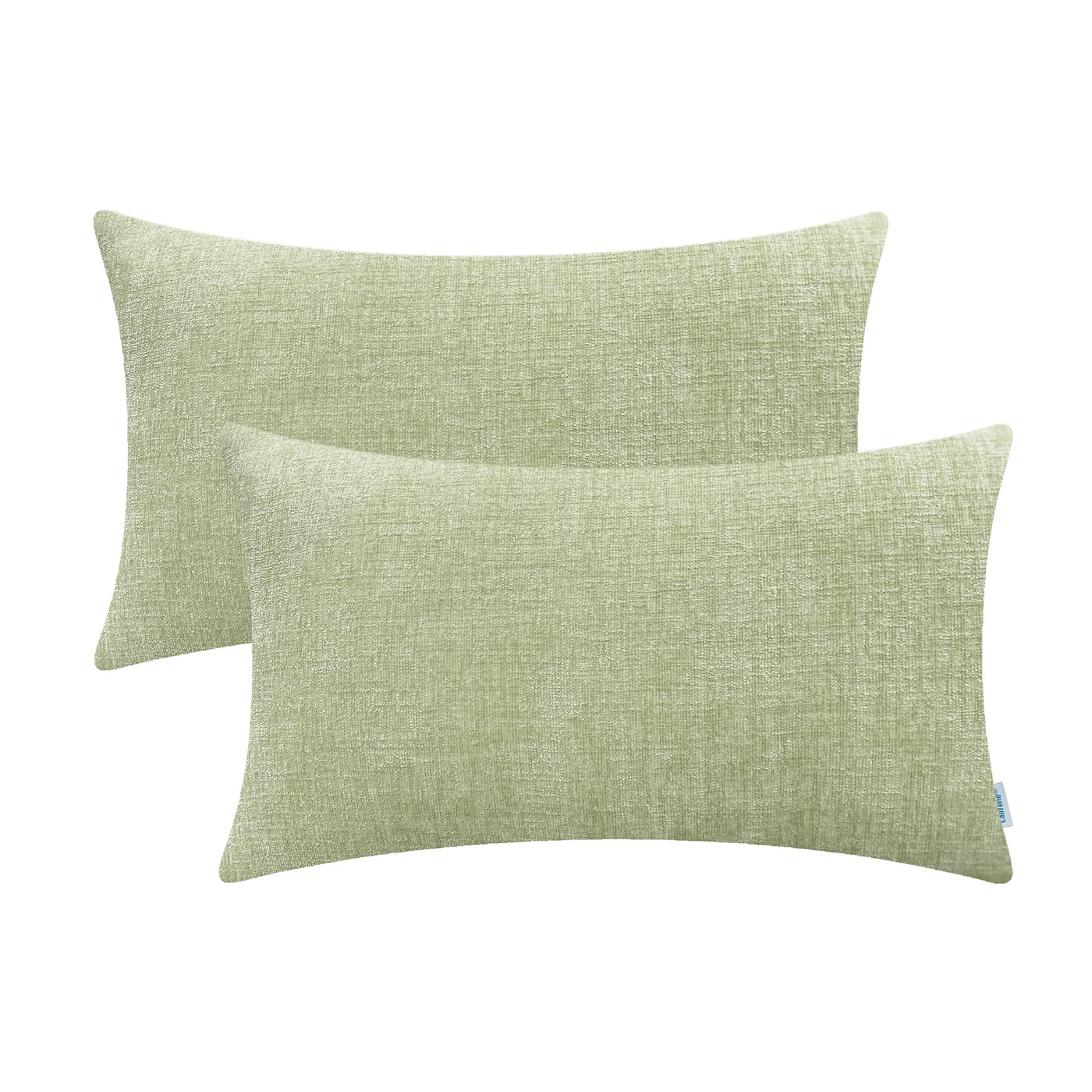 Calitime Pack Of 2 Cozy Pillow Covers Cases For Couch Sofa Home Decoration Solid Dyed Soft Chenille 12 X 20 Inches Sage
