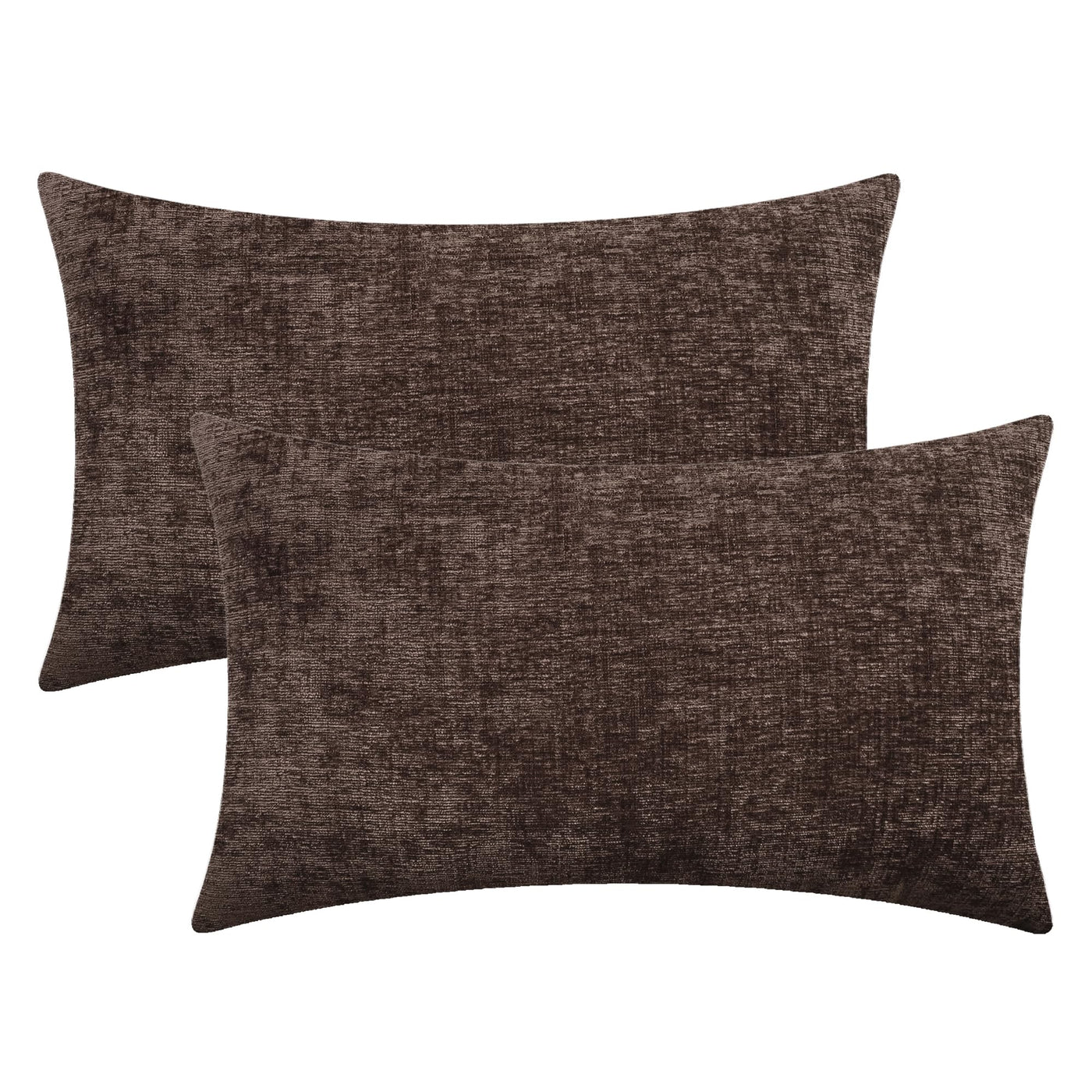 Calitime Pack Of 2 Cozy Throw Pillow Covers Cases For Couch Sofa Home Decoration Solid Dyed Soft Chenille 16 X 26 Inches Coffee