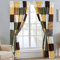 Cozy Line Home Fashions Brown Olive Farmhouse Country Patchwork Window Curtains With Tie Backs Set, 84' X 53', 2 Panels