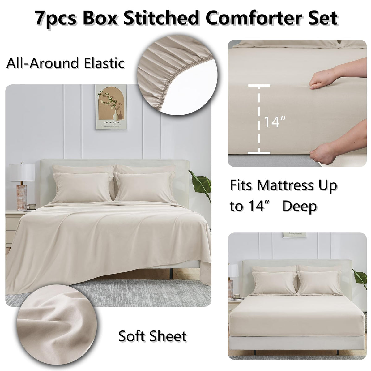 Cozylux Beige Comforter Set King 7 Pieces Cream Comforter Set Bed In A Bag Beige Bedding Sets King For All Season With Comforter, Flat Sheets, Fitted Sheet, Pillowcases & Shams