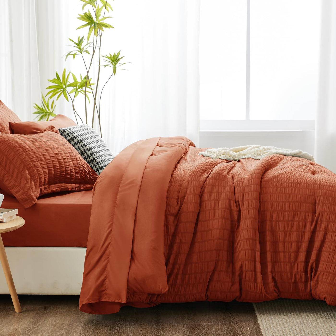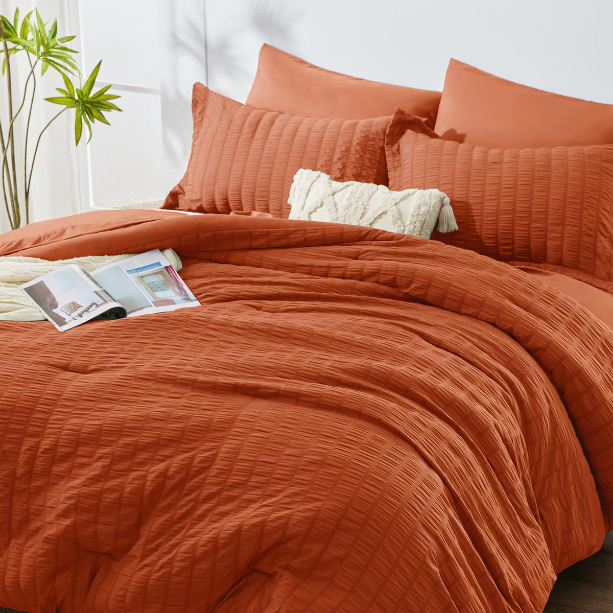 Cozylux Full Seersucker Comforter Set With Sheets Burnt Orange Bed In A Bag 7-Pieces All Season Bedding Sets With Comforter, Pillow Sham, Flat Sheet, Fitted Sheet, Pillowcase