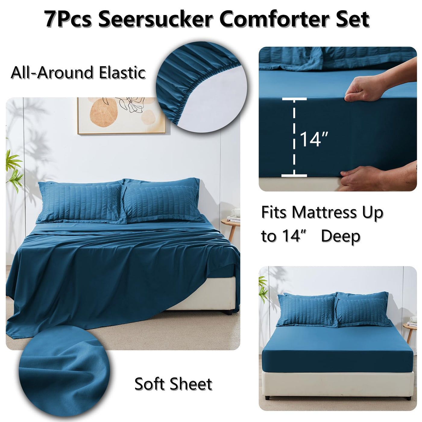 Cozylux Full Seersucker Comforter Set With Sheets Teal Bed In A Bag 7-Pieces All Season Bedding Sets With Comforter, Pillow Sham, Flat Sheet, Fitted Sheet, Pillowcase