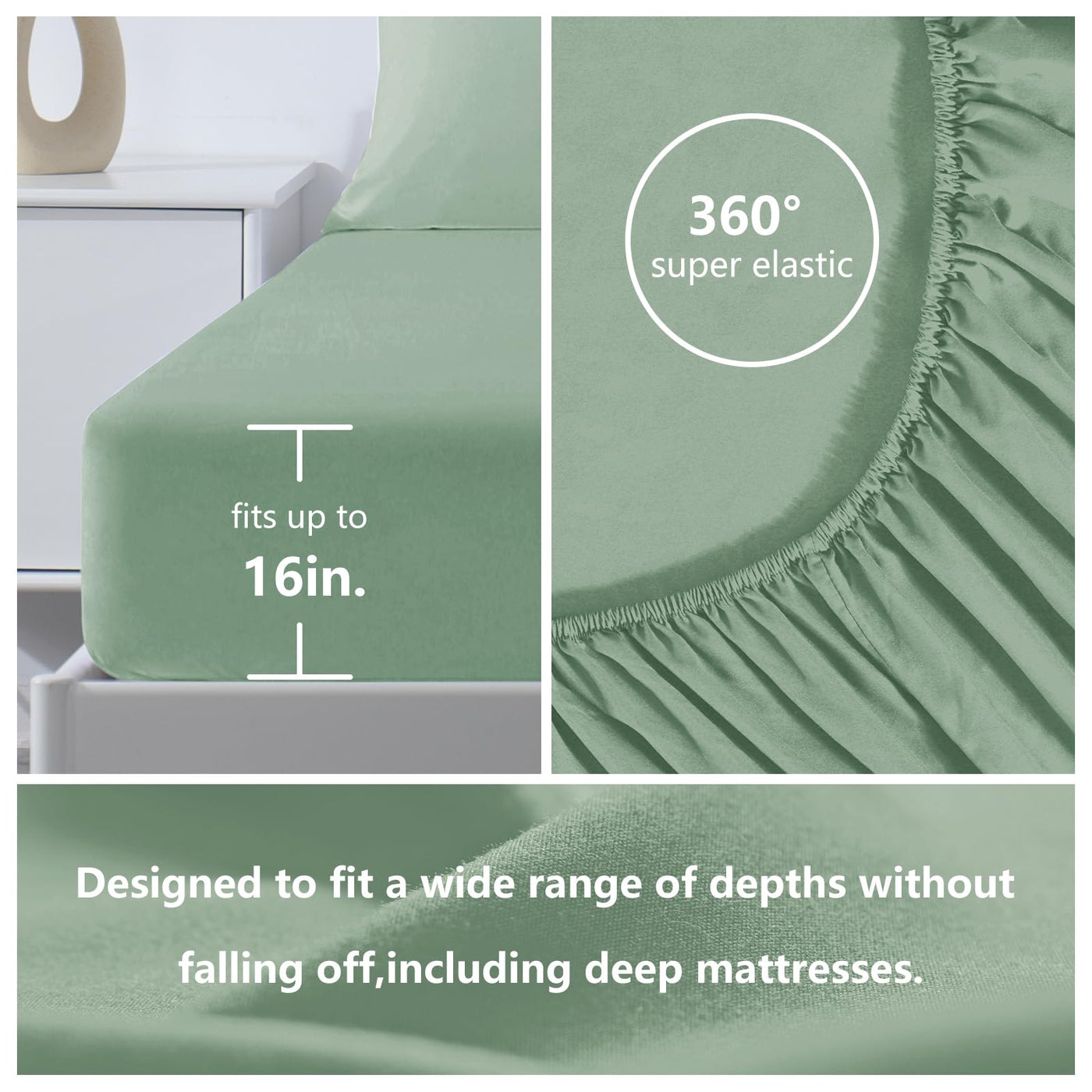 Cozylux King Bed Sheets Set 1800 Series 4-Piece Embroidered Double Brushed Microfiber Sheets 16' Deep Pocket Hotel Soft Luxury Bedding Sheet Set, Wrinkle Resistant, Sage Green