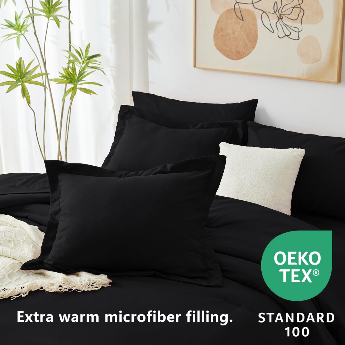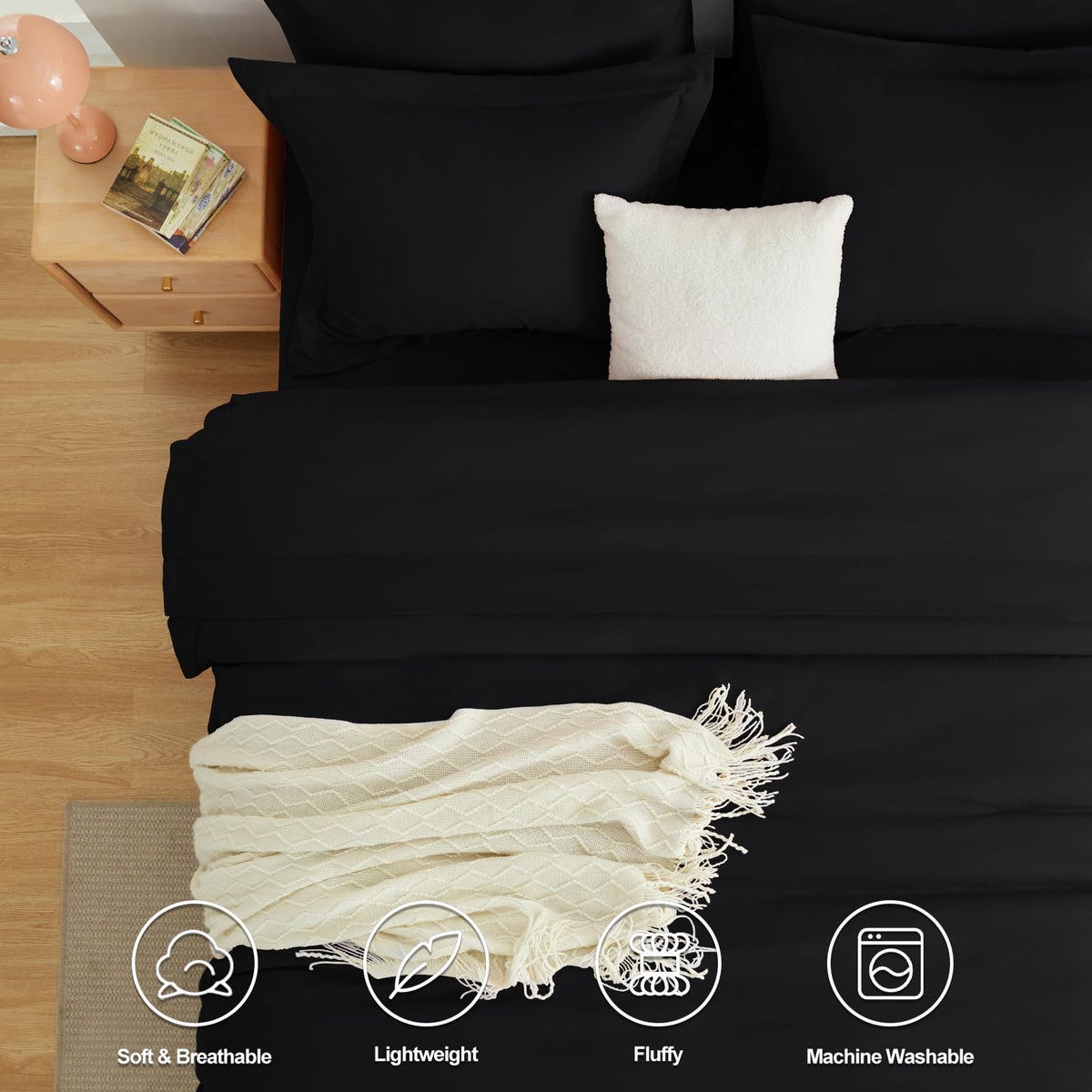 Cozylux Queen Comforter Set Black, 7 Pieces Bed In A Bag Soft Bedding Comforter Set With Sheets, All Season Boho 7Pc Bed Sets With Comforter, Fitted Sheets, Flat Sheets, Pillow Shams And Pillowcases