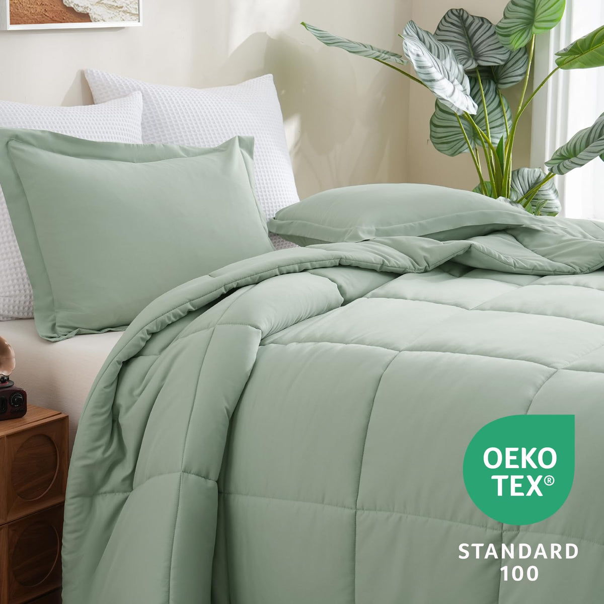 Cozylux Queen Comforter Set - Sage Green Comforter Queen Size, 3 Pieces Box Stitched Bed Set For All Seasons, Soft Lightweight Bedding Sets With 1 Down Alternative Comforter And 2 Pillow Shams
