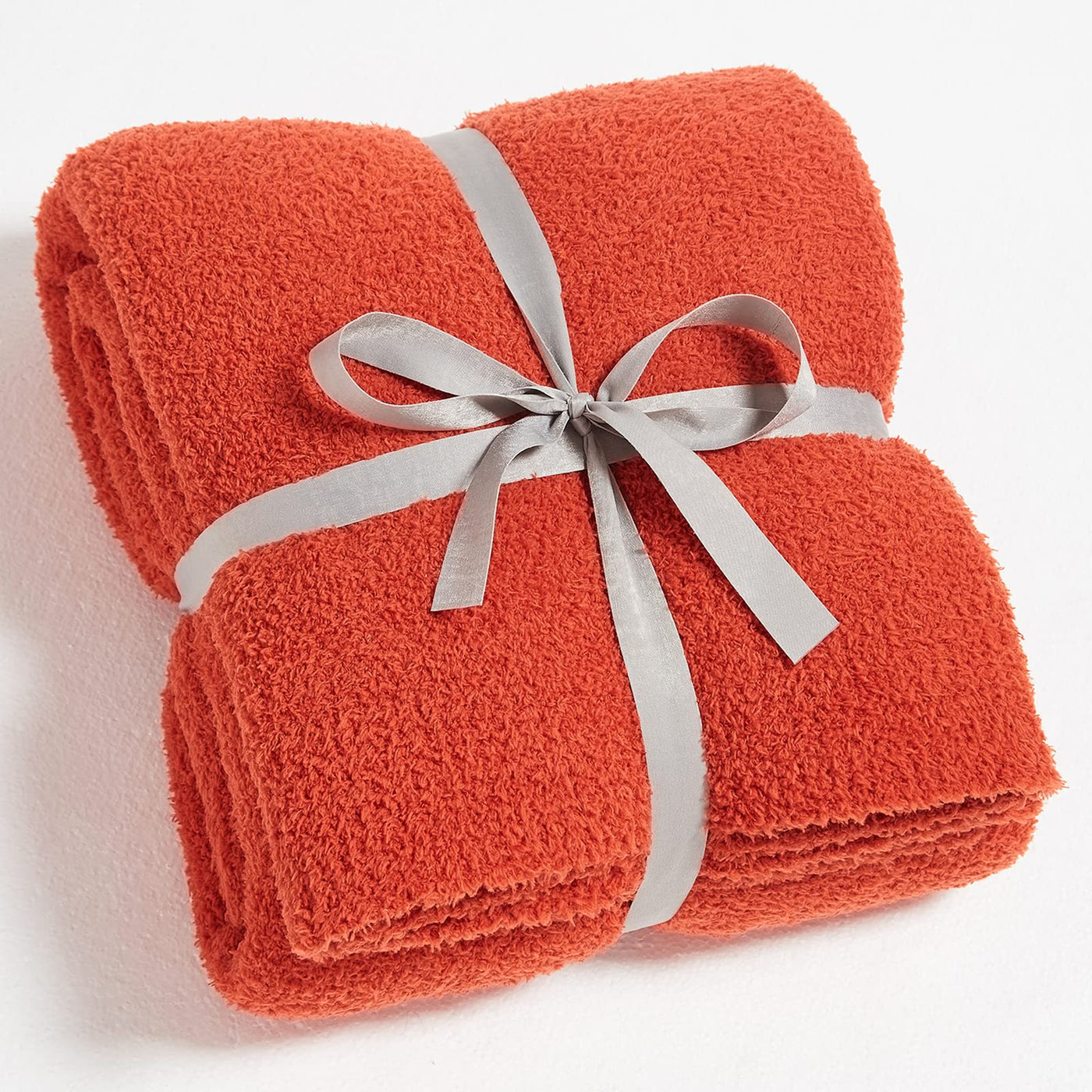 Cymula Super Soft Knit Throw Blanket Twin Size Orange-Lightweight Plush Fuzzy Fluffy Warm Cozy Blankets And Throws For Sofa Bed