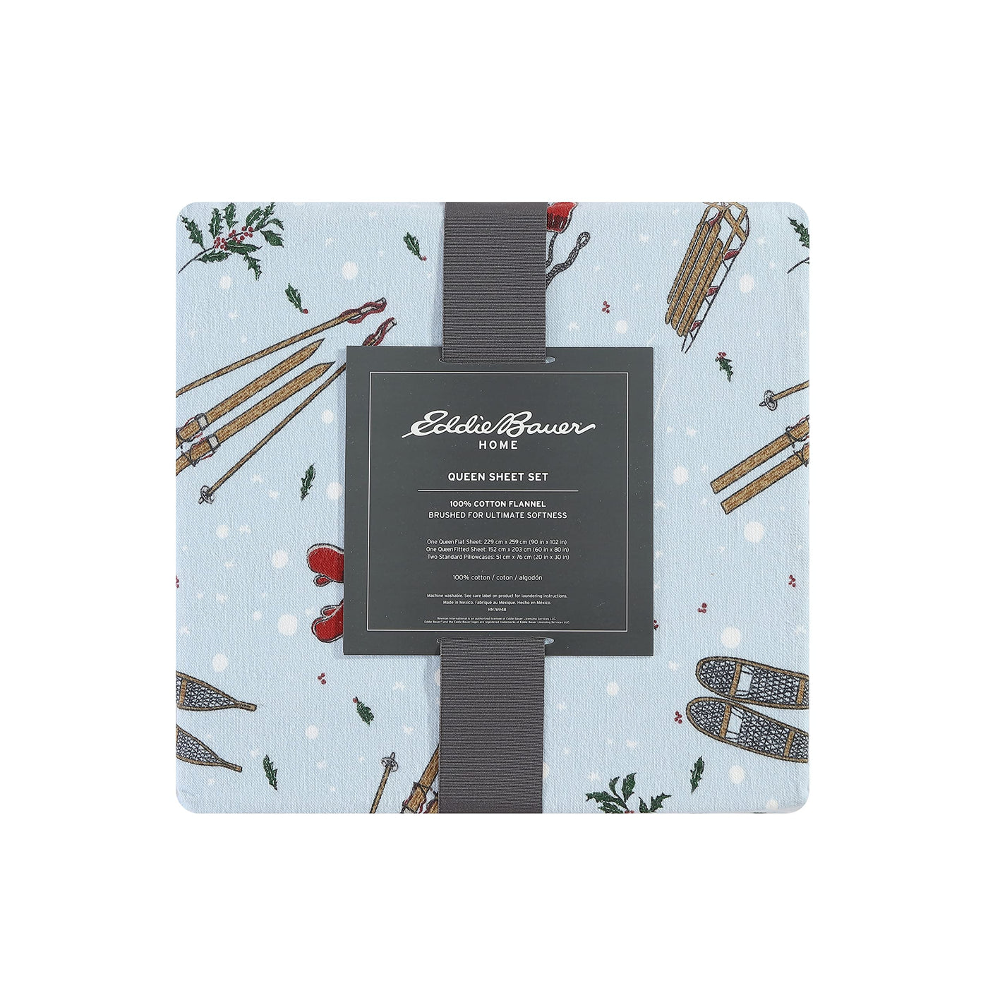 Eddie Bauer - Flannel Collection - Cotton Bedding Sheet Set, Pre-Shrunk & Brushed For Extra Softness, Comfort, And Cozy Feel, Queen, Snow Days