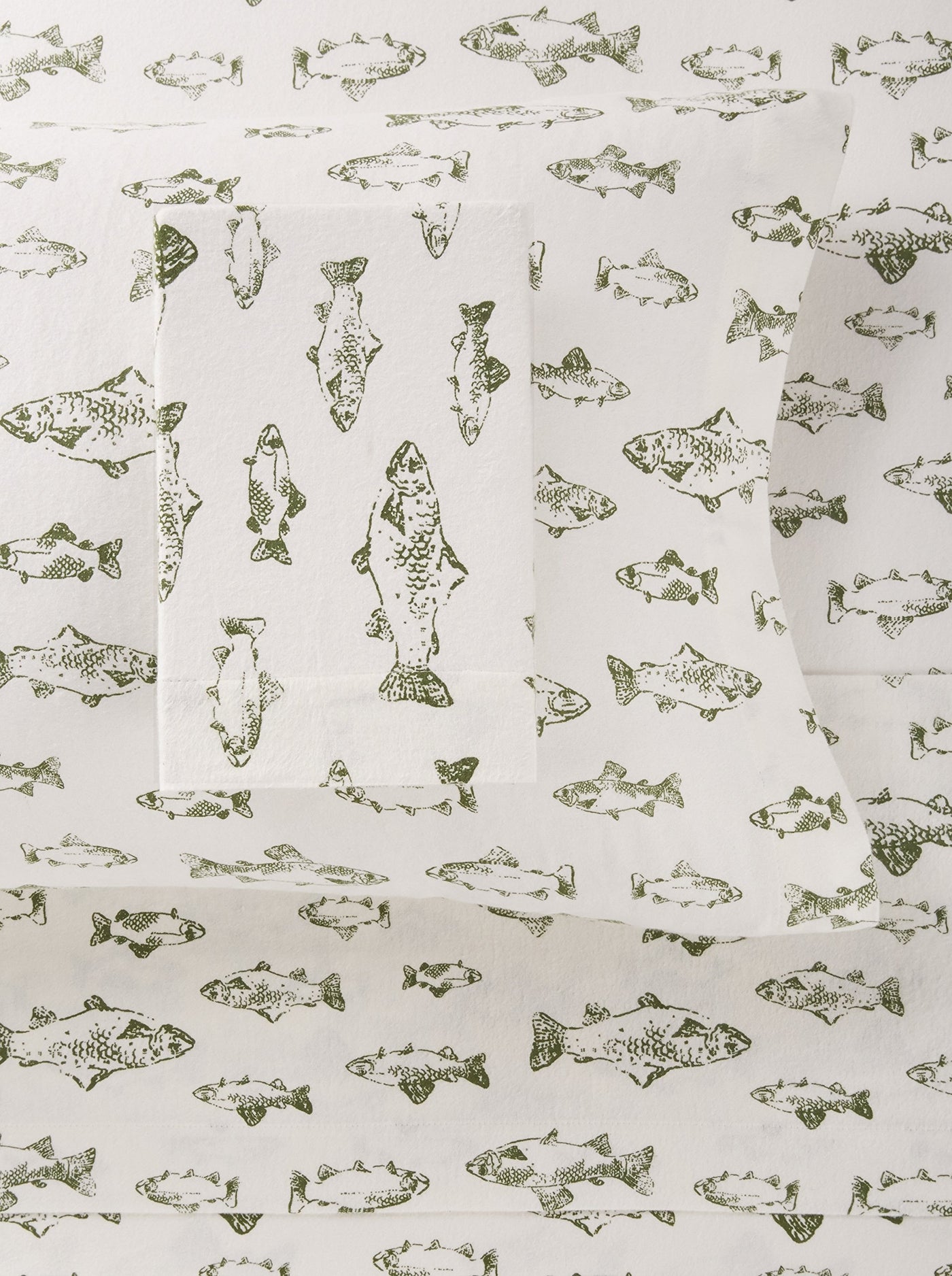 Eddie Bauer - Full Sheets, Cotton Flannel Bedding Set, Brushed For Extra Softness, Cozy Home Decor (School Of Fish, Full)