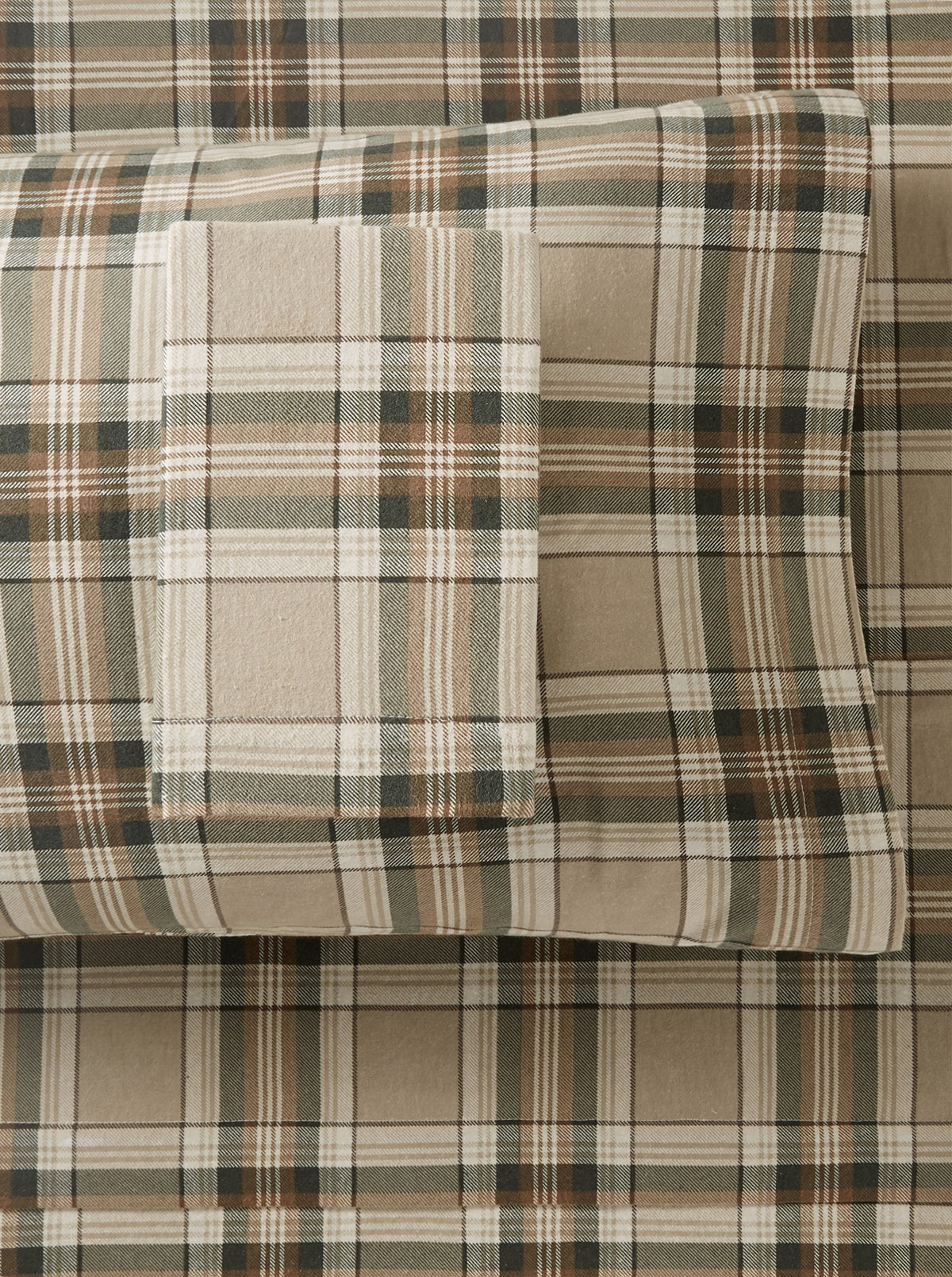 EDDIE BAUER HOME: Expertly crafted bedding collections inspired by outdoor adventures. Our products combine durability and comfort for versatile and functional pieces that bring the spirit of exploration into your home every day. | PERFECT HOLIDAY GIFT: These ultra-cozy sheets make a wonderful holiday gift, offering warmth and comfort for a restful night's sleep while adding a touch of seasonal charm to any bed. | FEATURES: This sheet set includes a fully elastic fitted sheet to keep the sheet in place with deep pockets; Fits mattresses up to 18' up to 15' for twin sizes; Made with 100% cotton flannel construction and brushed three times for added softness. Includes one flat sheet, one fitted sheet and two standard pillowcases. The flat sheet measures at 102'L x 90'W, fitted sheet at 80'L x 60'W, and pillowcase at 20'L x 30'W. | CARE: To get the most of your Eddie Bauer Sheet Set, machine wash cold and tumble dry low. | CERTIFICATIONS: STANDARD 100 by OEKO-TEX Certified