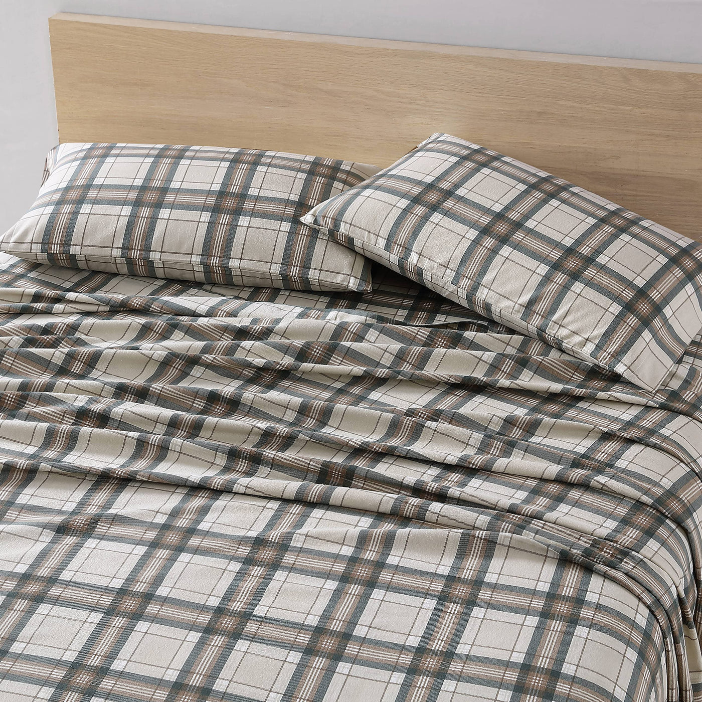 Eddie Bauer - Queen Sheet Set, Warm Breathable Cotton Flannel Bedding With Deep Pockets, Brushed For Extra Softness, Cozy Home Decor, Oeko-Tex Certified (Edgewood Plaid, Queen)