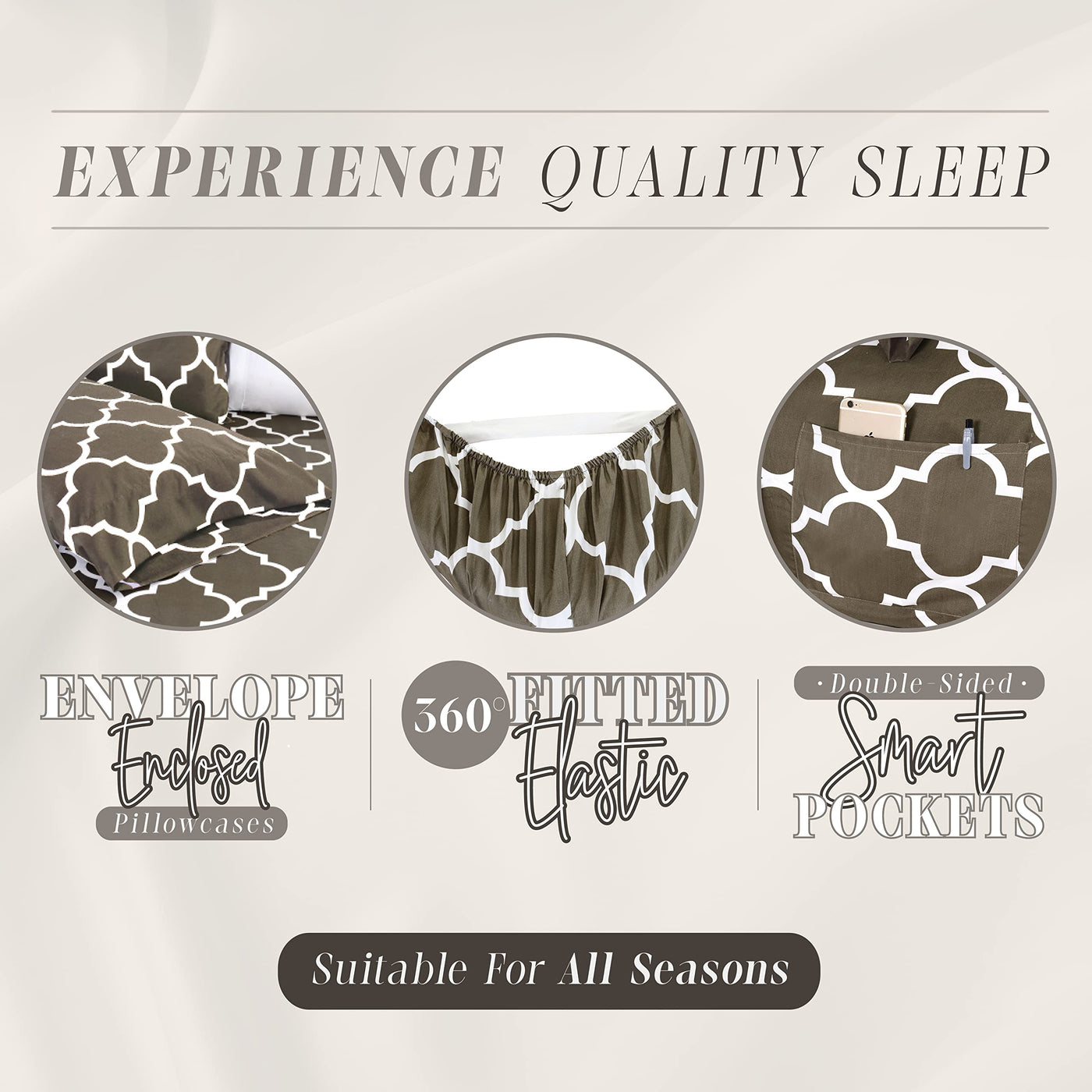 Elegant Comfort 6-Piece Moroccan Trellis Print Sheet Set with Deep Pockets- 1500 Thread Count. Our Twin and Twin XL are only available as 4-Piece Sets, including 1-Fitted Sheet, 1-Flat Sheet, and 2-Pillowcases. All other sizes will be 6-Piece Sets including 1-Fitted Sheet, 1-Flat Sheet, and 4-Pillowcases. Let yourself wallow in the soft haven that Elegant Comfort has to offer. Our sheet set includes a fully elasticized fitted sheet with deep pockets and can fit mattresses up to 16” deep. Featuring double sided storage pockets to keep your bedtime materials within reach. We understand the value of your time, which is why these sheet sets are crafted from incredible wrinkle-free microfiber yarns. Easy care, fade & stain resistant, and the perfect fit. Available in a variety of vibrant colors, Elegant Comfort can provide the perfect set for your room. Care Instructions: Do not bleach. Machine wash cold with like colors on a gentle cycle. Tumble dry low to avoid damaging your sheets.