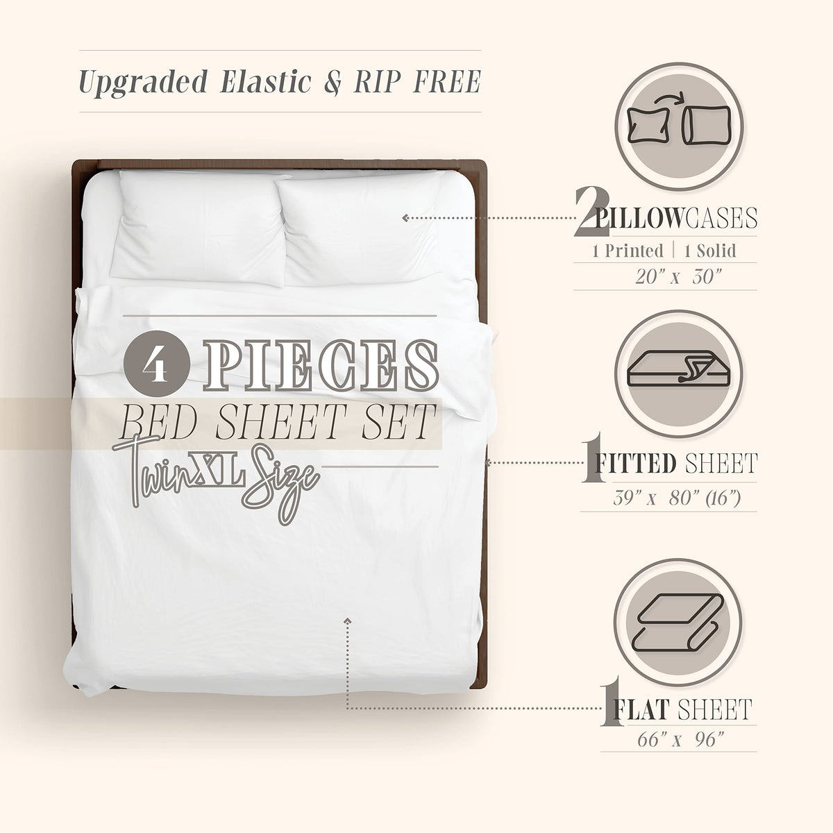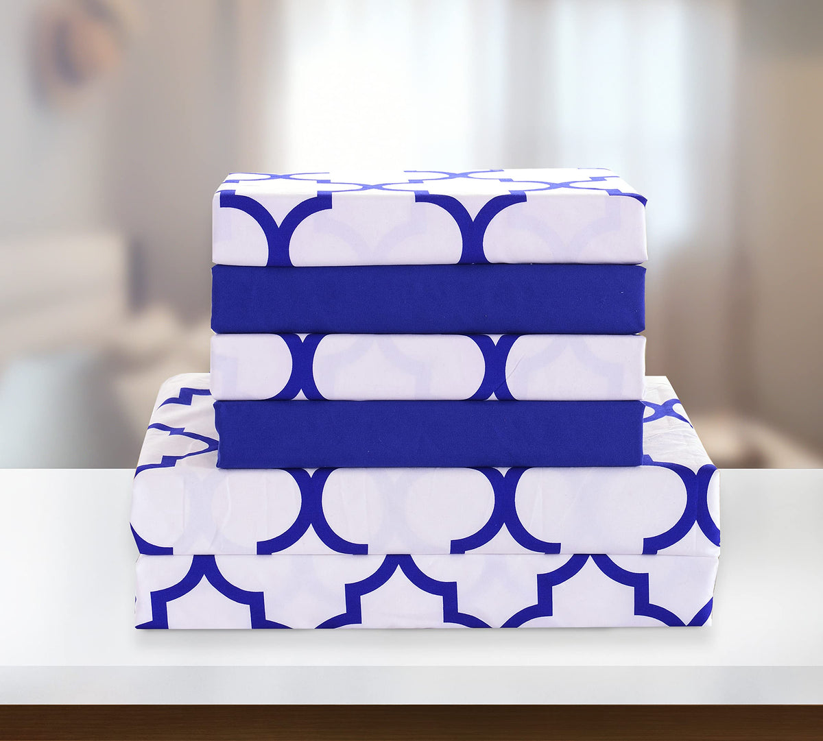 Elegant Comfort 4-Piece Moroccan Trellis Print Sheet Set, Super Cozy, Fade And Wrinkle Resistant, 1500 Premium Hotel Quality Microfiber, Deep Pocket Fitted Sheet With Smart Pockets, Twin Xl, Blue