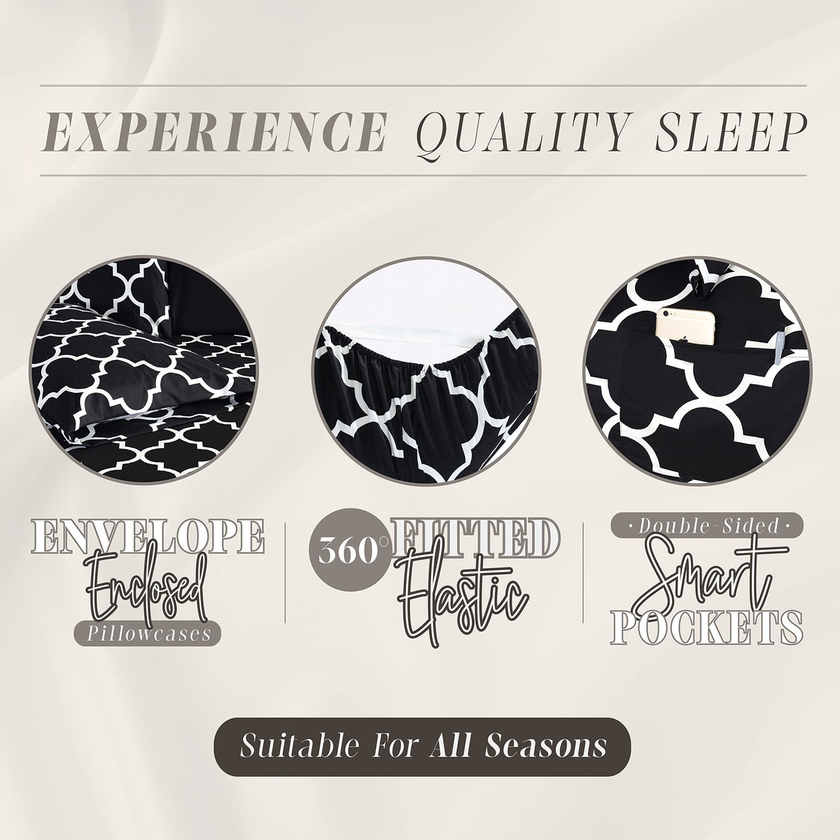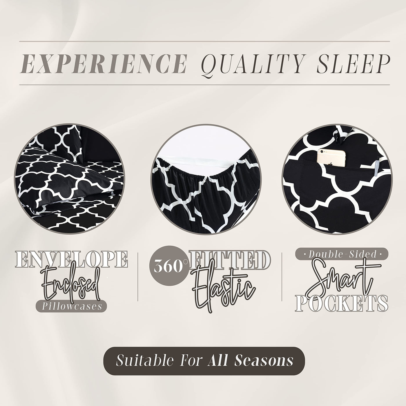Elegant Comfort 6-Piece Moroccan Trellis Print Sheet Set, Super Cozy, Fade And Wrinkle Resistant, 1500 Premium Hotel Quality Microfiber, Deep Pocket Fitted Sheet With Smart Pockets, Full, Black