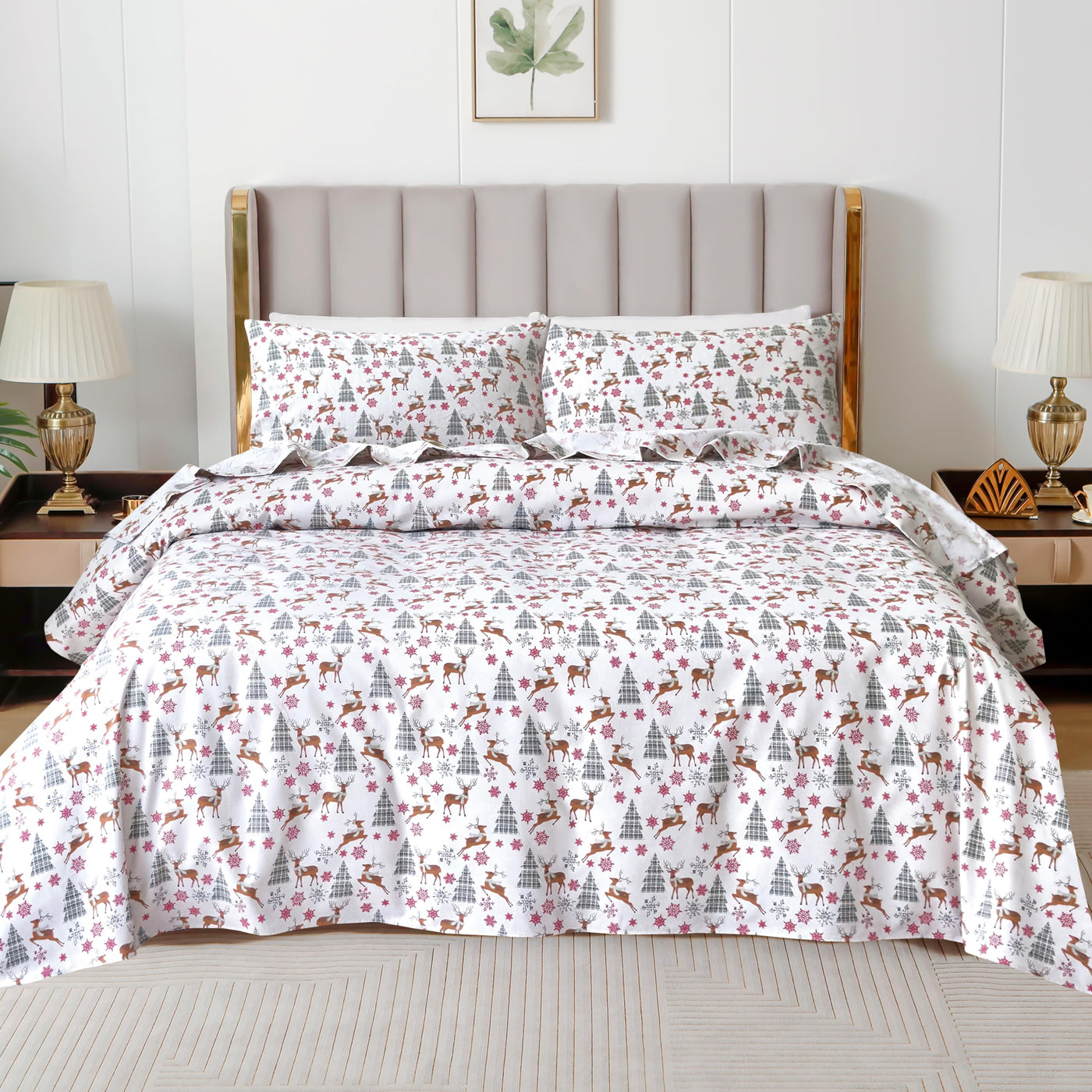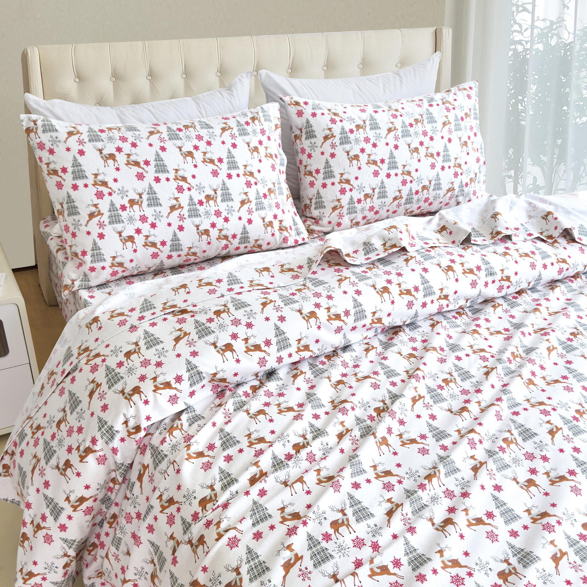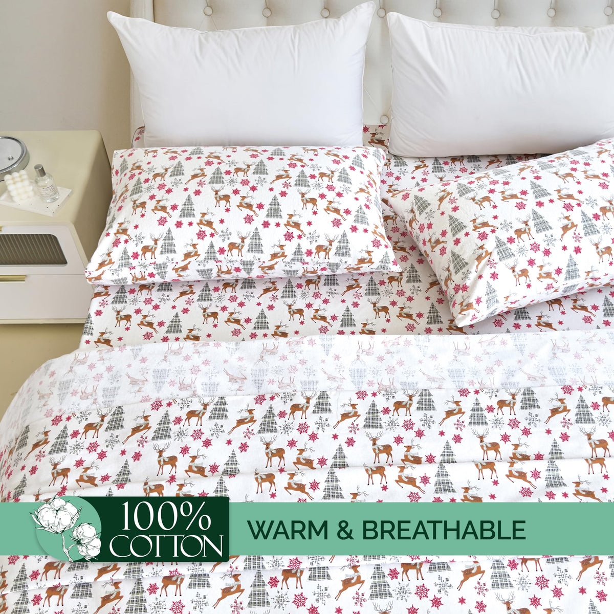 Elegant Comfort Ultra Soft 4-Piece 100% Turkish Cotton Flannel Sheet Set - Holiday Christmas Flannel Sheets, Warm And Cozy Premium Quality, Deep Pocket Fitted Sheet- King, Plaid Deer