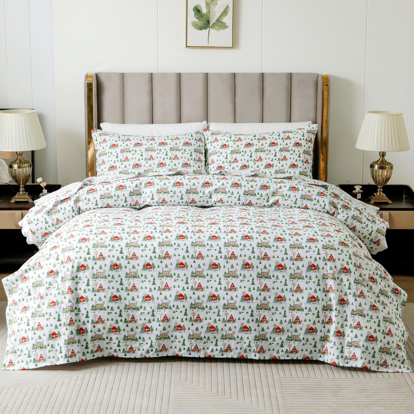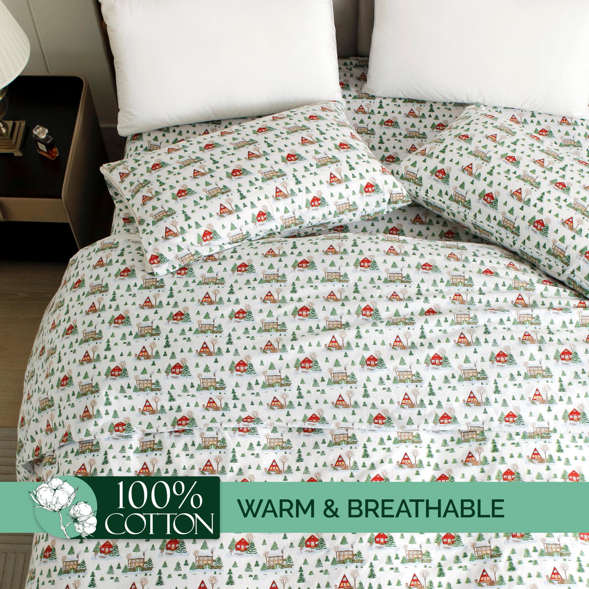 Elegant Comfort Ultra Soft 4-Piece 100% Turkish Cotton Flannel Sheet Set - Holiday Christmas Flannel Sheets, Warm And Cozy Premium Quality, Deep Pocket Fitted Sheet- Twin, Cozy Lodge
