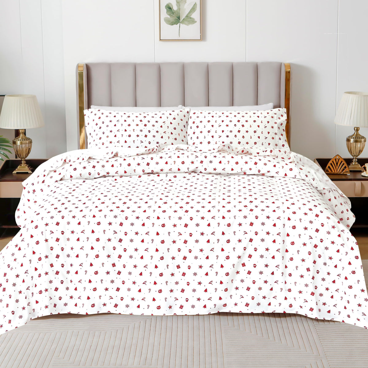 Introducing our exclusive collection of 100% Turkish Cotton Elegant Comfort Flannel sheet, perfect for transforming your bedroom into a cozy Christmas getaway or snuggling up on cold nights. These sheets are not only resistant to shrinking and pilling but also get softer with each wash, ensuring you'll love them even more with every passing season. Whether you use them as a great blanket topper on winter nights or the only cover you need on warm evenings, our 4-piece sets, featuring 1-Fitted Sheet, 1-Flat Sheet, and 2-Pillowcases, are available in various stunning colors and patterns to match any interior design. Plus, with easy care instructions and OEKO-TEX 100 STANDARD CERTIFICATION, your flannel sheets will remain soft for years to come. Treat yourself or a loved one to ultimate comfort and style this holiday season with our premium flannel sheets.