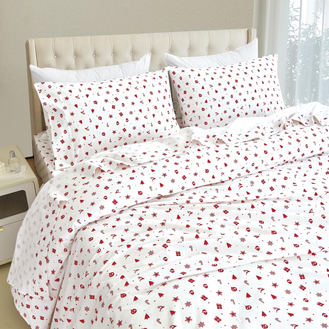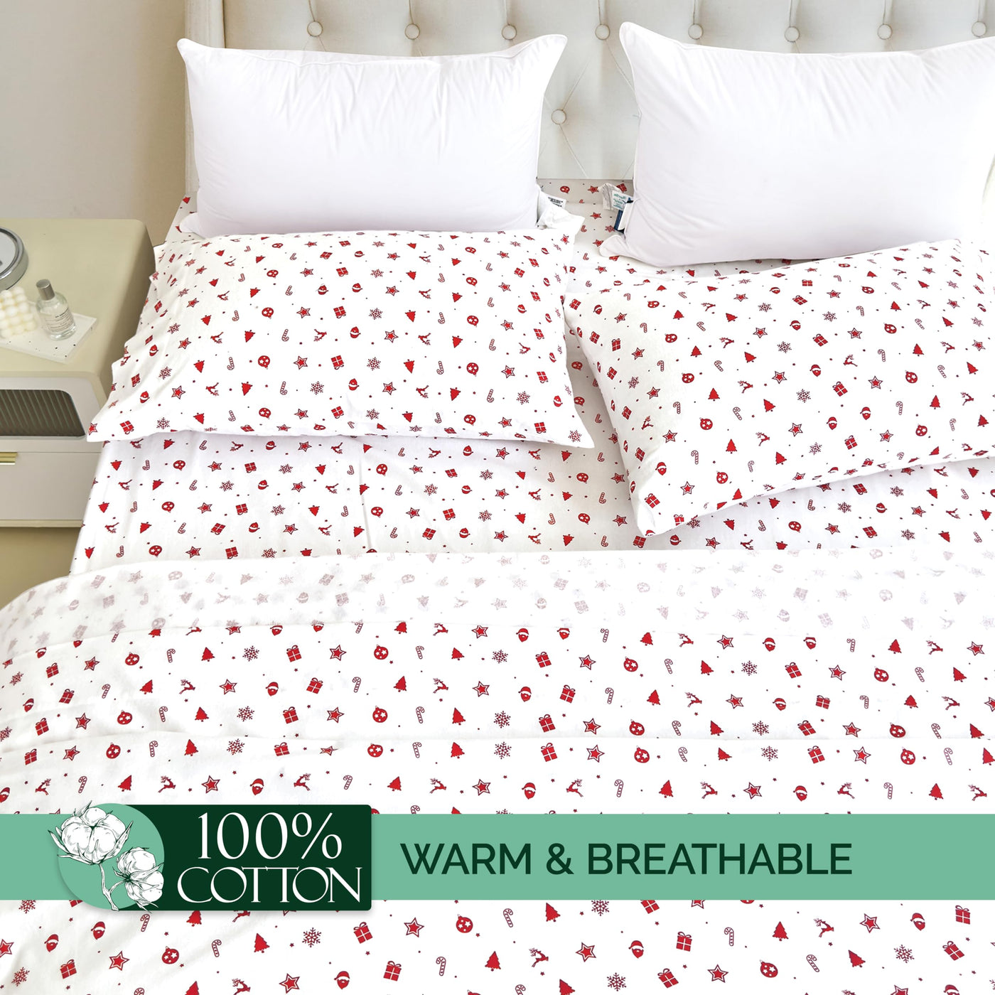 Elegant Comfort Ultra Soft 4-Piece 100% Turkish Cotton Flannel Sheet Set - Holiday Christmas Flannel Sheets, Warm And Cozy Premium Quality, Deep Pocket Fitted Sheet- Twin, Red Stars