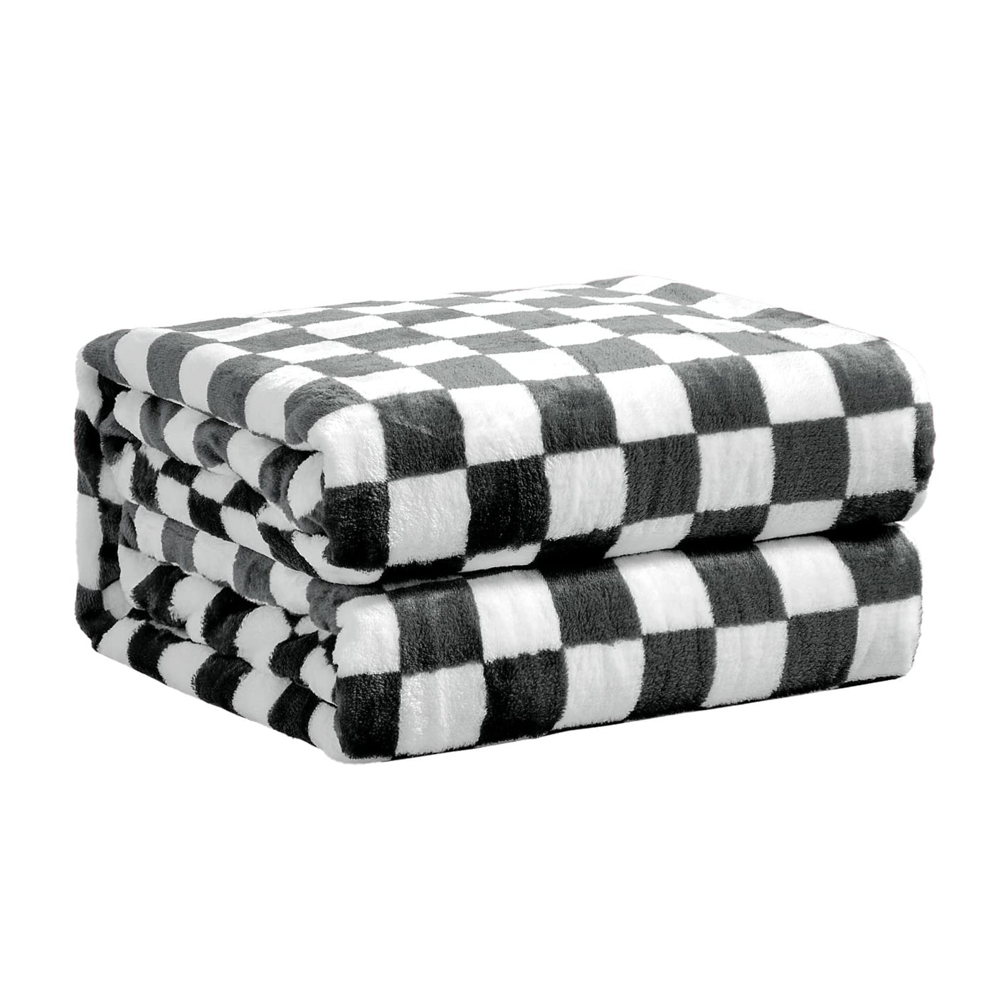 Fy Fiber House Checkered Flannel Fleece Throw Blanket King Size Soft Cozy Checkerboard Grid Print Chessboard Gingham Pattern Bla