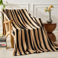 Fy Fiber House Striped Flannel Throw Blanket - Soft Cozy Striped Blanket For Couch, Sofa, Or Bed - 50'X60', Black Brown, All Season Use
