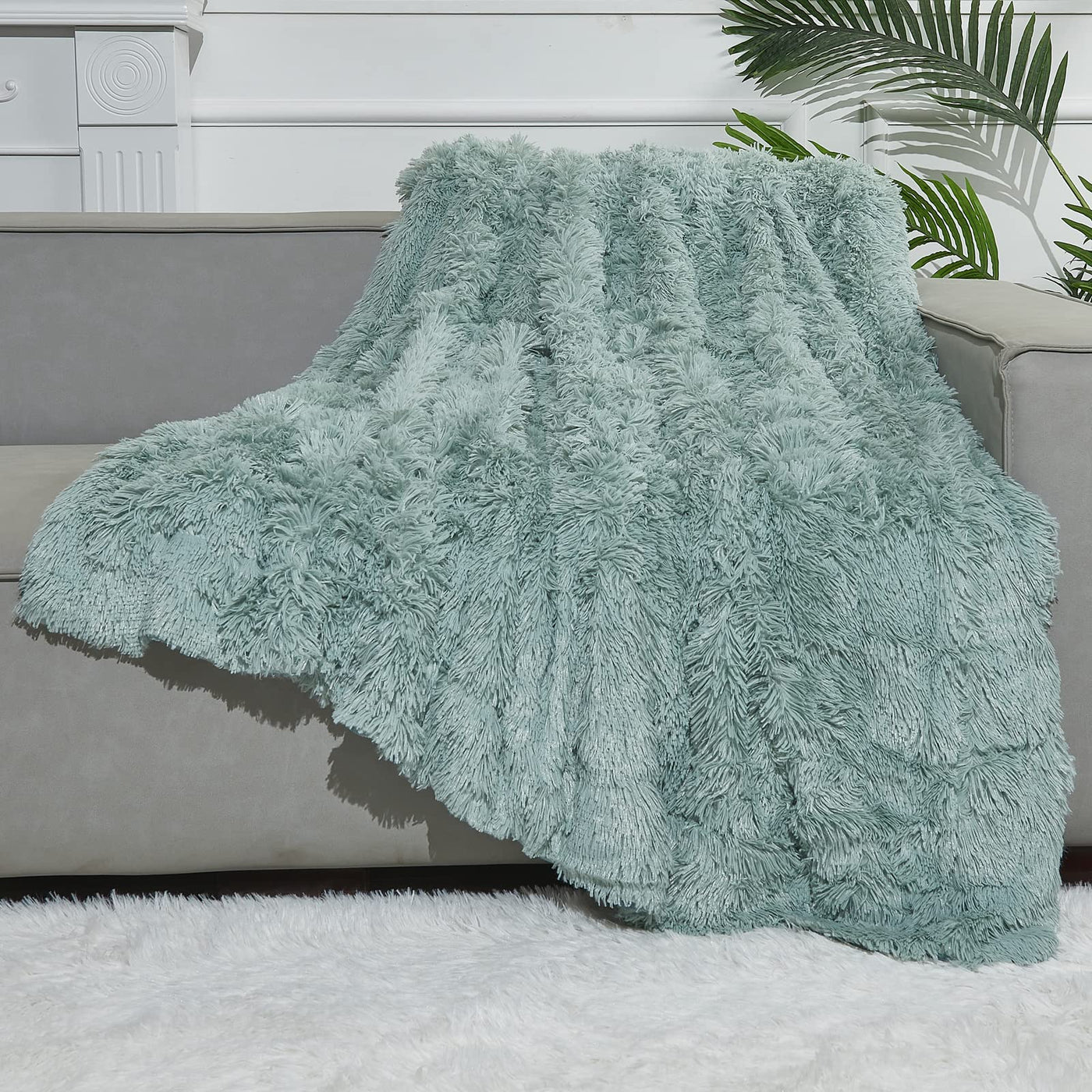 Gonaap Fuzzy Faux Fur Throw Blanket Twin Size Ice Blue Super Soft Cozy Plush Fuzzy Shaggy Blanket For Couch Sofa Bed (Ice Blue,
