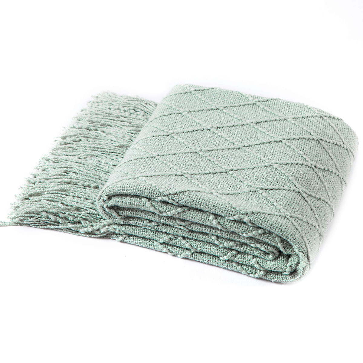 Homiest Decorative Knitted Throw Blanket With Fringe Soft & Cozy Tassel Blanket For Couch Sofa Bed (50' X 60', Aqua)