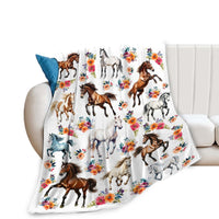 Horse Blanket Horse Flower White Throw Blanket Horse Gifts For Girls Women Men Boys Kids Adults Super Soft Cozy Plush Fluffy Fuz
