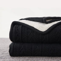 Longhui Bedding Black Acrylic Cable Knit Sherpa Throw Blanket - Thick, Soft, Big, Cozy Knitted Fleece Blankets For Couch, Sofa,