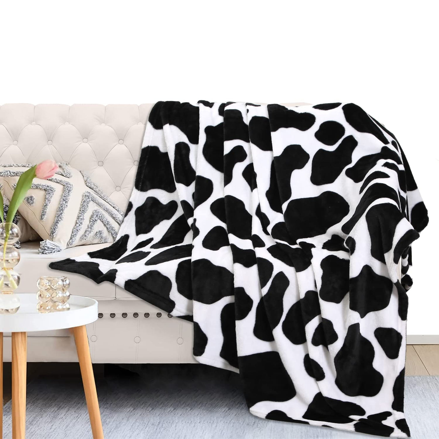 Macevia Flannel Fleece Throw Blanket For Couch, Black Cow Print Blanket, Fuzzy Cozy Comfy Soft Fluffy Plush Cute Cow Blanket For