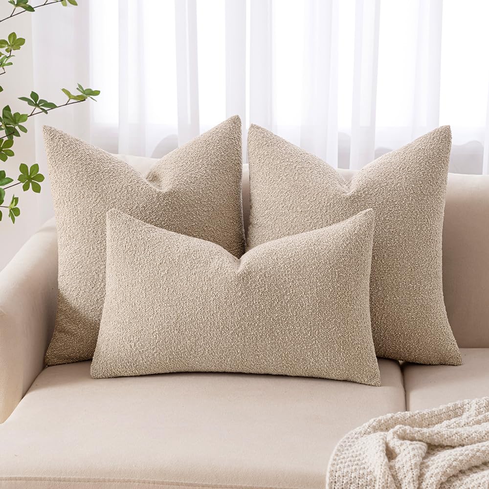 Miulee 12X20 Inch Decorative Pillow Covers For Couch Bed Set Of 2 Textured Boucle Neutral Throw Pillows Neutral Accent Solid Lumbar Cushion Pillowcase Cozy Soft Chair Sofa Livingroom Home Decor
