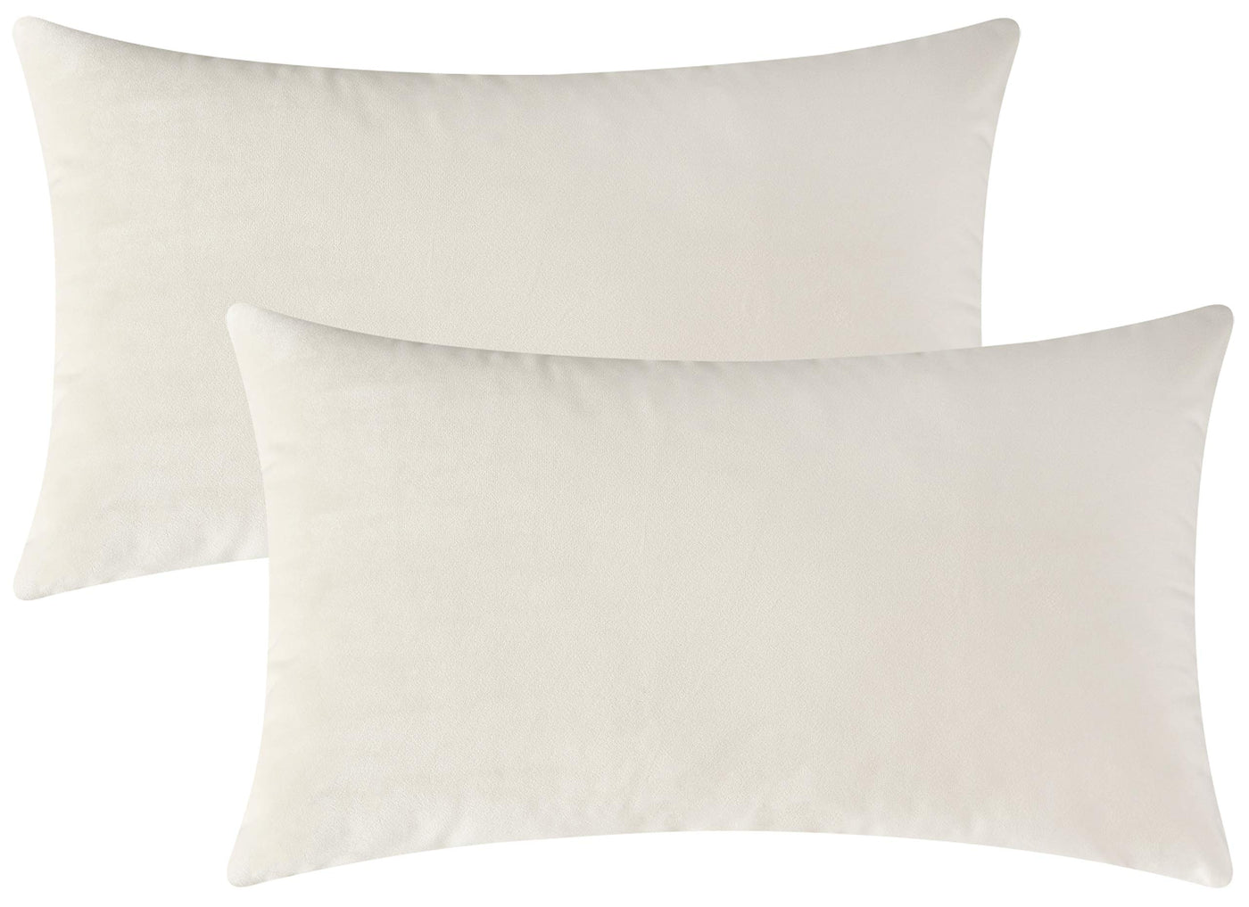 Mixhug Set Of 2 Cozy Velvet Rectangle Decorative Throw Pillow Covers For Couch And Bed, Cream, 12 X 20 Inches