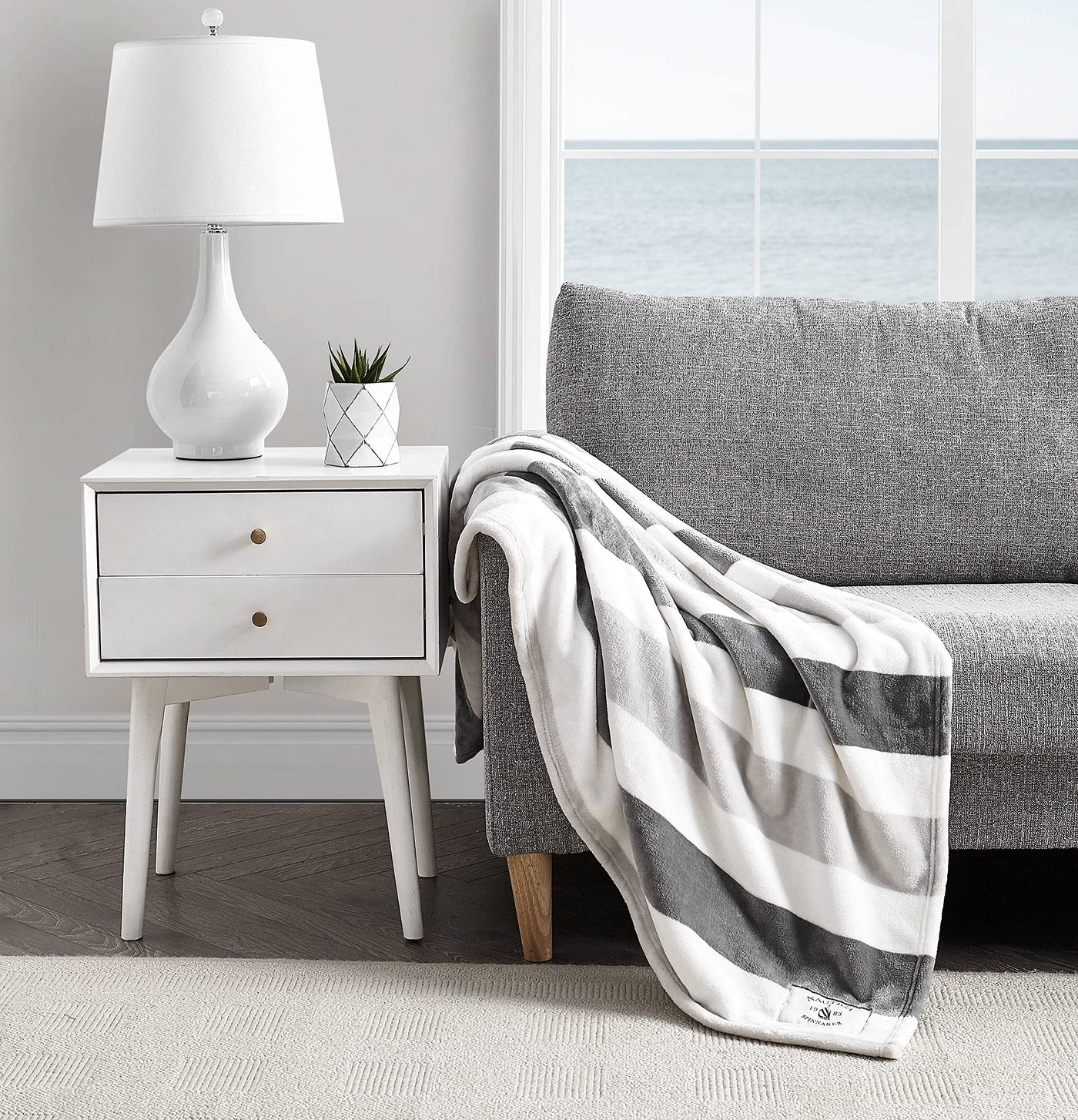 The Nautica Awning Stripe Throw Blanket Provides Warmth And Style With Its Ultra Soft Plush Construction. Made Of 100% Polyester, The Micro Flannel Fleece Is Medium Weight- 300 Gsm. Featuring Bold Horizontal Striping, This Self-Reversing Throw Blanket Is The Perfect Basic For Your Home. Available In Navy Or Grey Stripes, You Are Sure To Find The Right Throw To Coordinate Beautifully With Your Home Decor. Snuggle Up In Bed, On The Couch, Or Through Travel With This Easy Care, Machine Washable Throw Blanket.