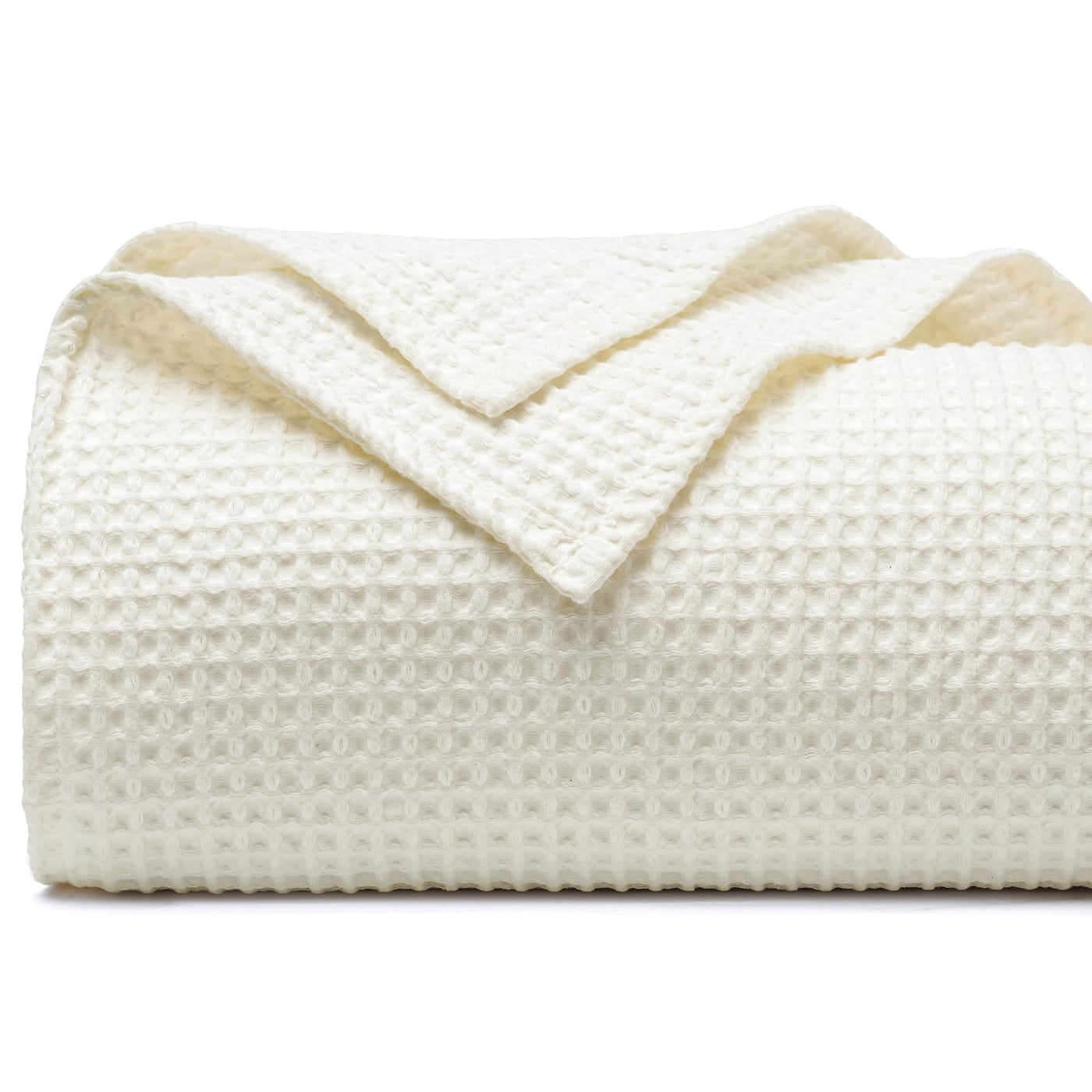 PHF 100% Cotton Waffle Weave Blanket King Size 104' x 90' - Lightweight Cozy Washed Soft Breathable Throw Blanket -Great Blanket Layer for Couch Bed Sofa - Elegant Aesthetic Home Decoration - Cream