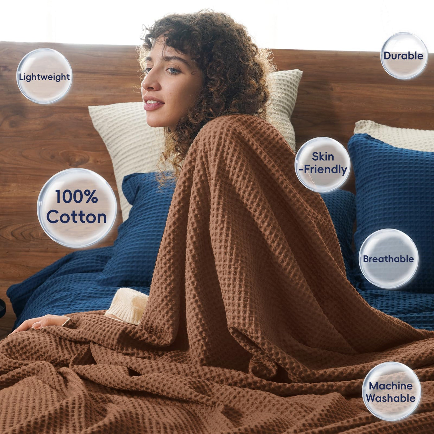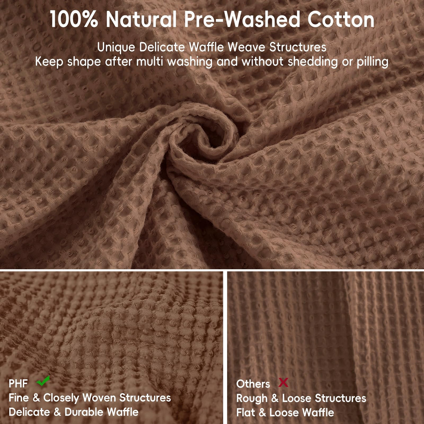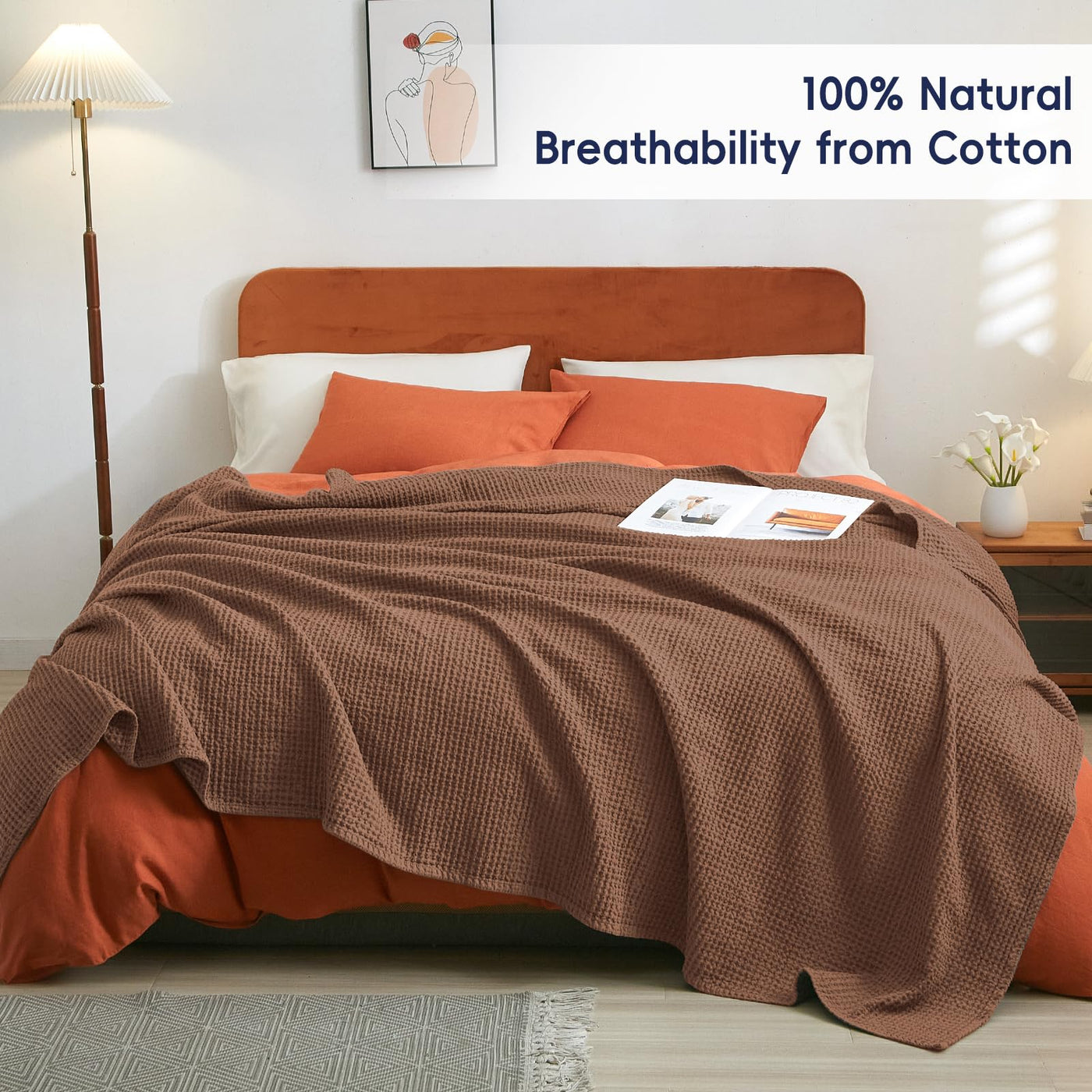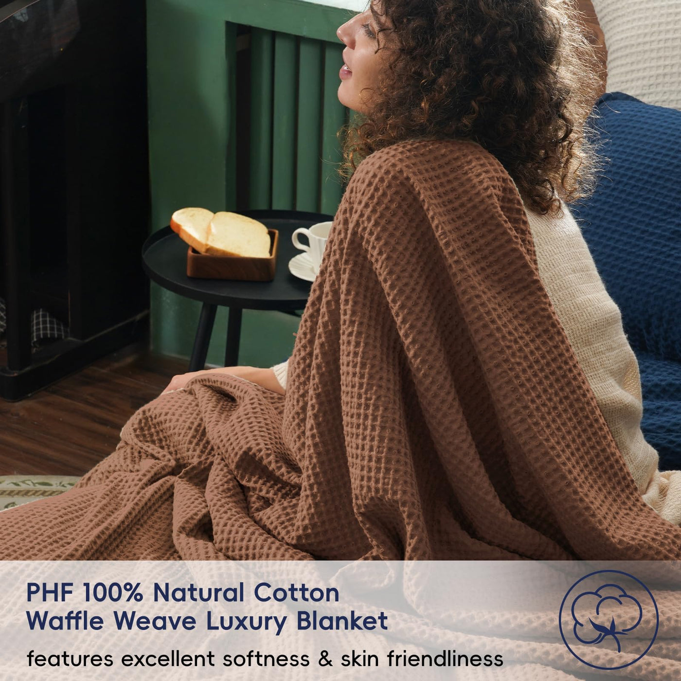 PHF 100% Cotton Waffle Weave Blanket King Size 104' x 90'-Lightweight Cozy Washed Soft Breathable Throw Blanket -Perfect Blanket Layer for Couch Bed Sofa-Elegant Aesthetic Home Decoration - Cappuccino