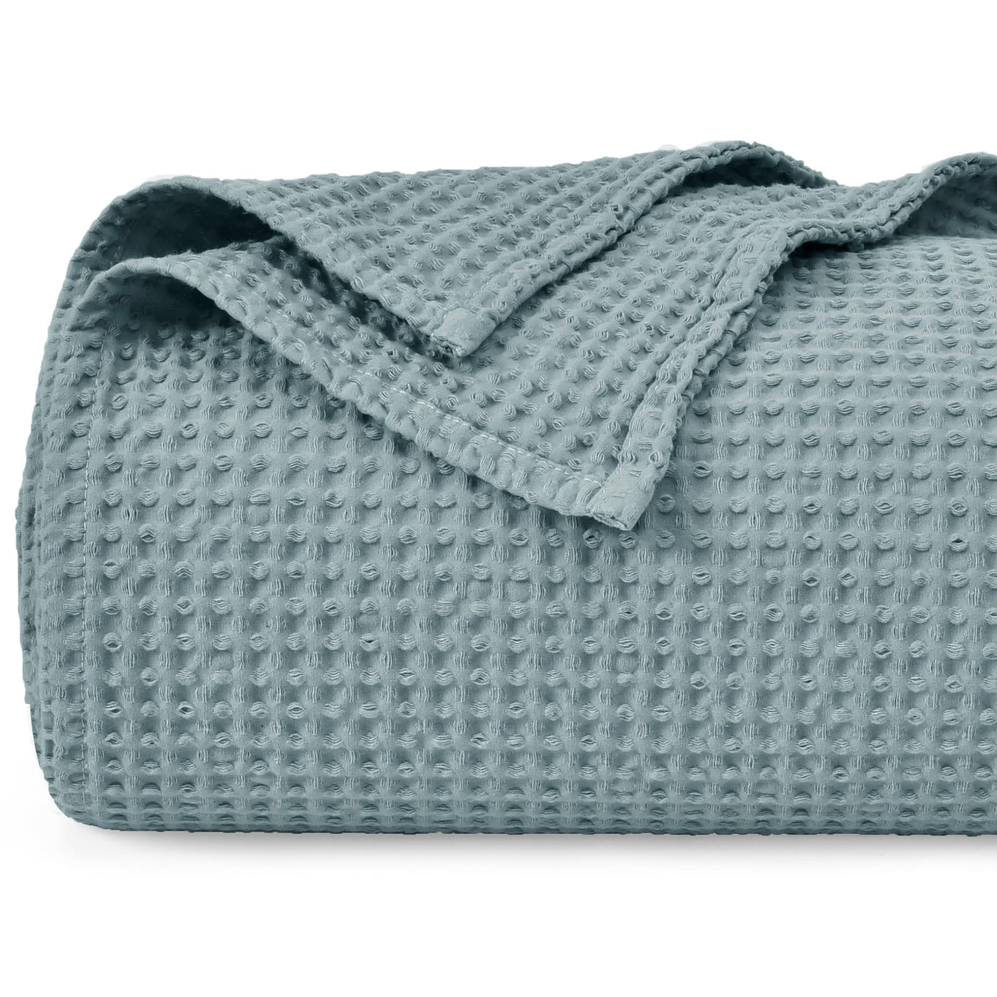 Phf 100% Cotton Waffle Weave Blanket King Size 104' X 90' - Lightweight Cozy Washed Soft Breathable Throw - Perfect Layer For Couch Bed Sofa - Elegant Aesthetic Home Decoration Gift - Ocean