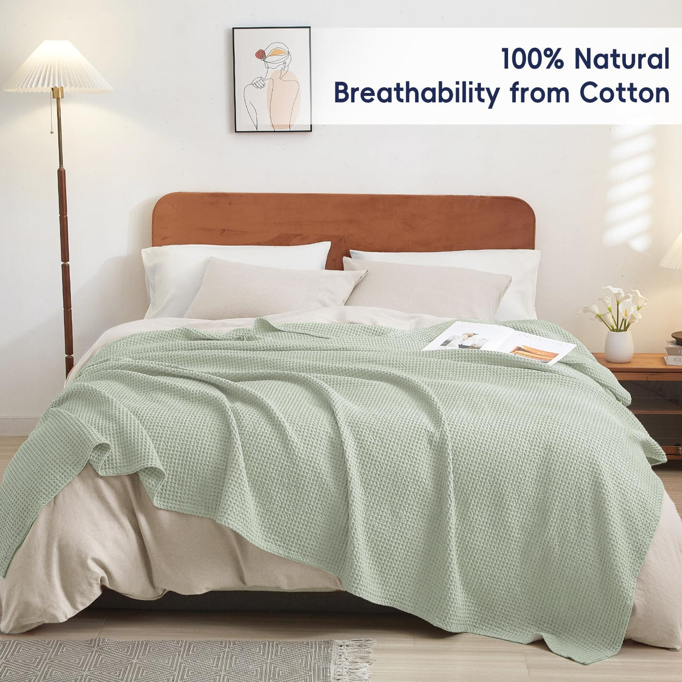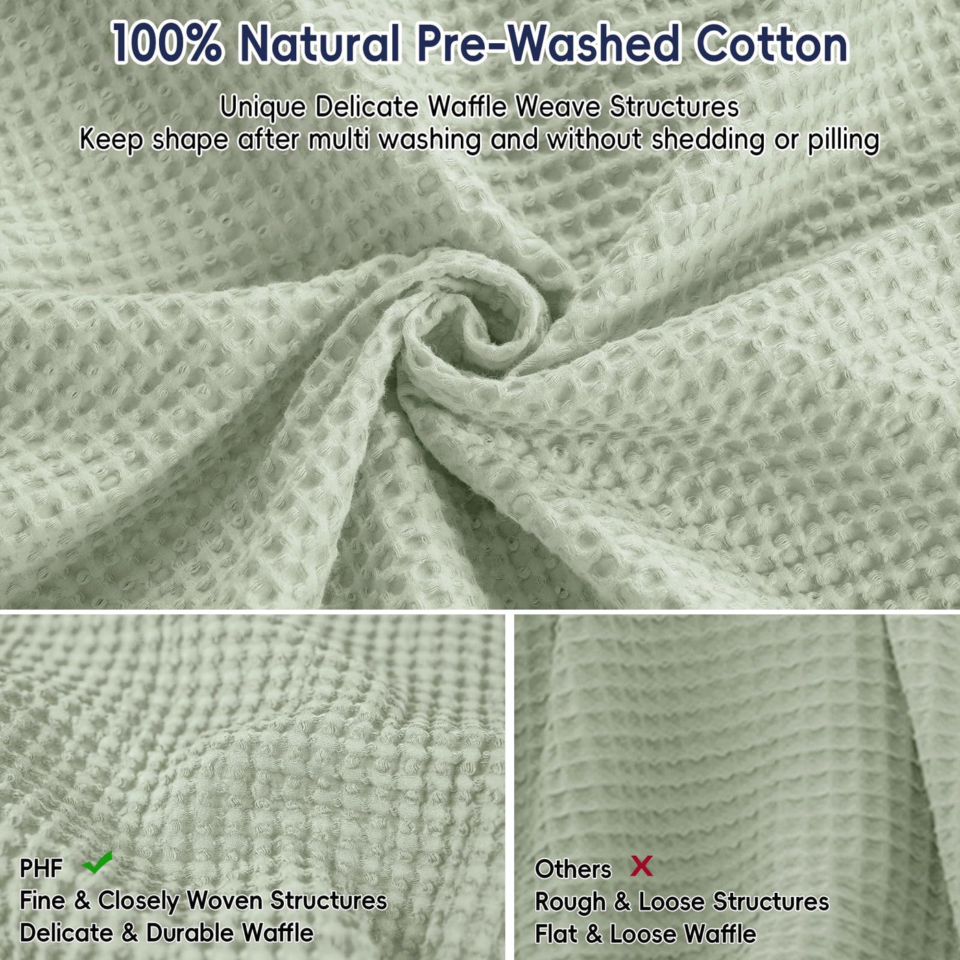 PHF 100% Cotton Waffle Weave Blanket Twin Size 66'x90' - Lightweight Cozy Washed Soft Breathable Throw Blanket - Great Blanket Layer for Couch Bed Sofa - Elegant Aesthetic Home Decoration - Sage Green