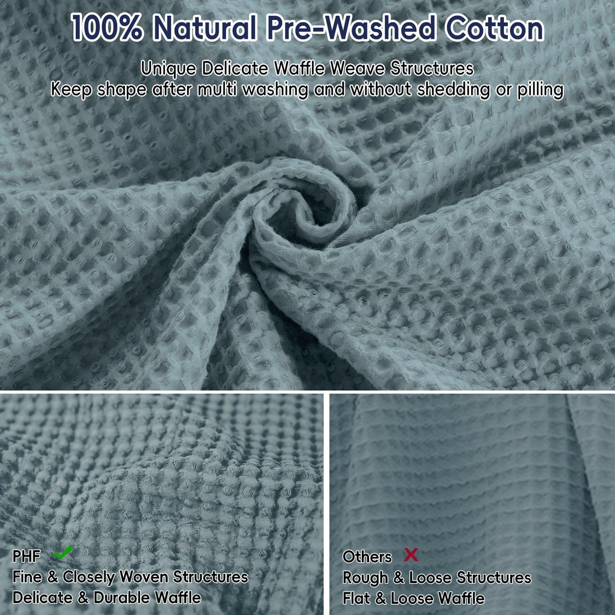 PHF 100% Cotton Waffle Weave Throw Blanket 50' x 60' - Lightweight Cozy Washed Soft Breathable Throw Blanket - Perfect Blanket Layer for Couch Bed Sofa - Elegant Aesthetic Home Decoration - Ocean