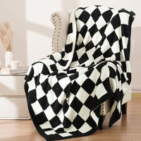 Phf Checkered Twin Blanket, Soft Knit Fluffy Aestheic Grid Blanket, Cozy Lightweight Checkerboard Fleece Blanket For Couch Bed S
