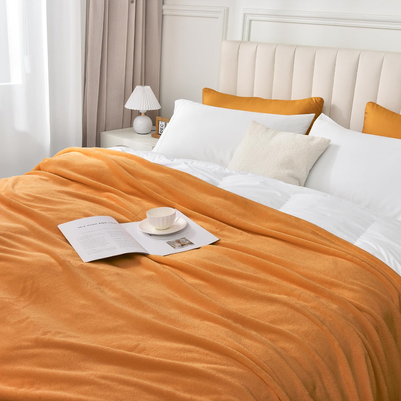 Phf Ultra Soft Fleece Blanket Queen Size, No Shed No Pilling Luxury Plush Cozy 300Gsm Lightweight Blanket For Bed, Couch, Chair, Sofa Suitable For All Season, 90' X 90', Pumpkin Orange