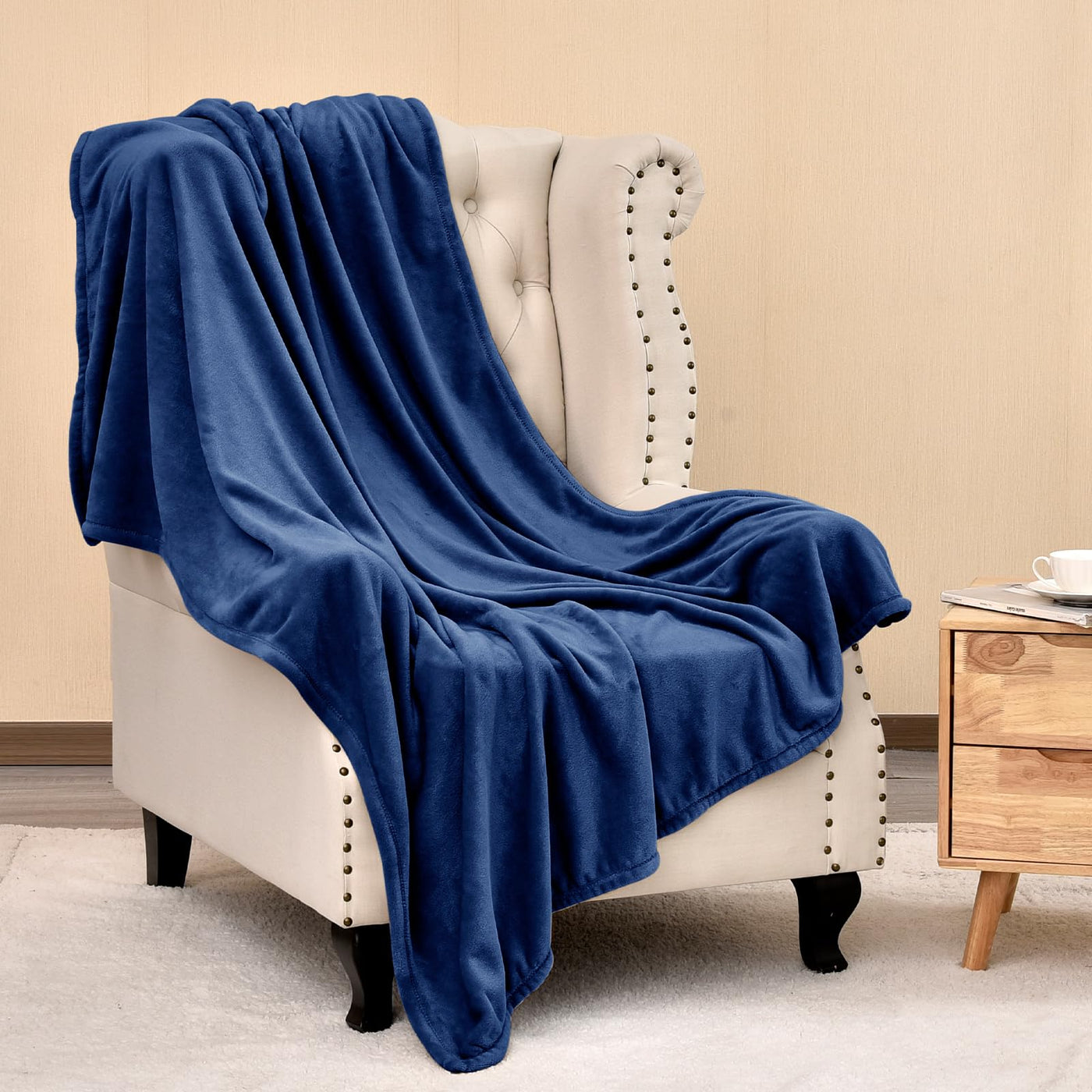 Phf Ultra Soft Fleece Throw Blanket, No Shed No Pilling Luxury Plush Cozy 300Gsm Lightweight Blanket For Bed, Couch, Chair, Sofa Suitable For All Season, 50' X 60', Navy Blue