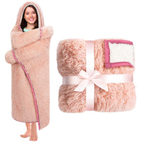 Rose Pink Wearable Throw Blanket Hoodie For Women- Thick Cozy 52'X60' Sherpa Fleece Shaggy Light Pink Decor For Couch, Bed & S