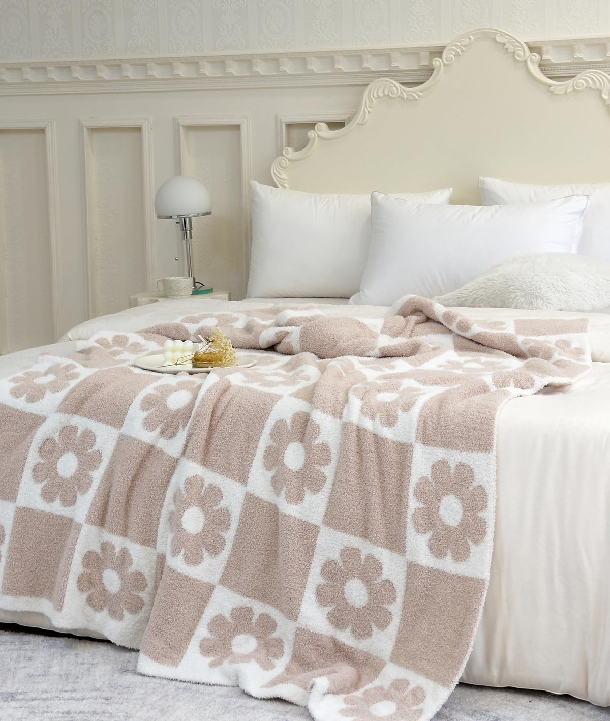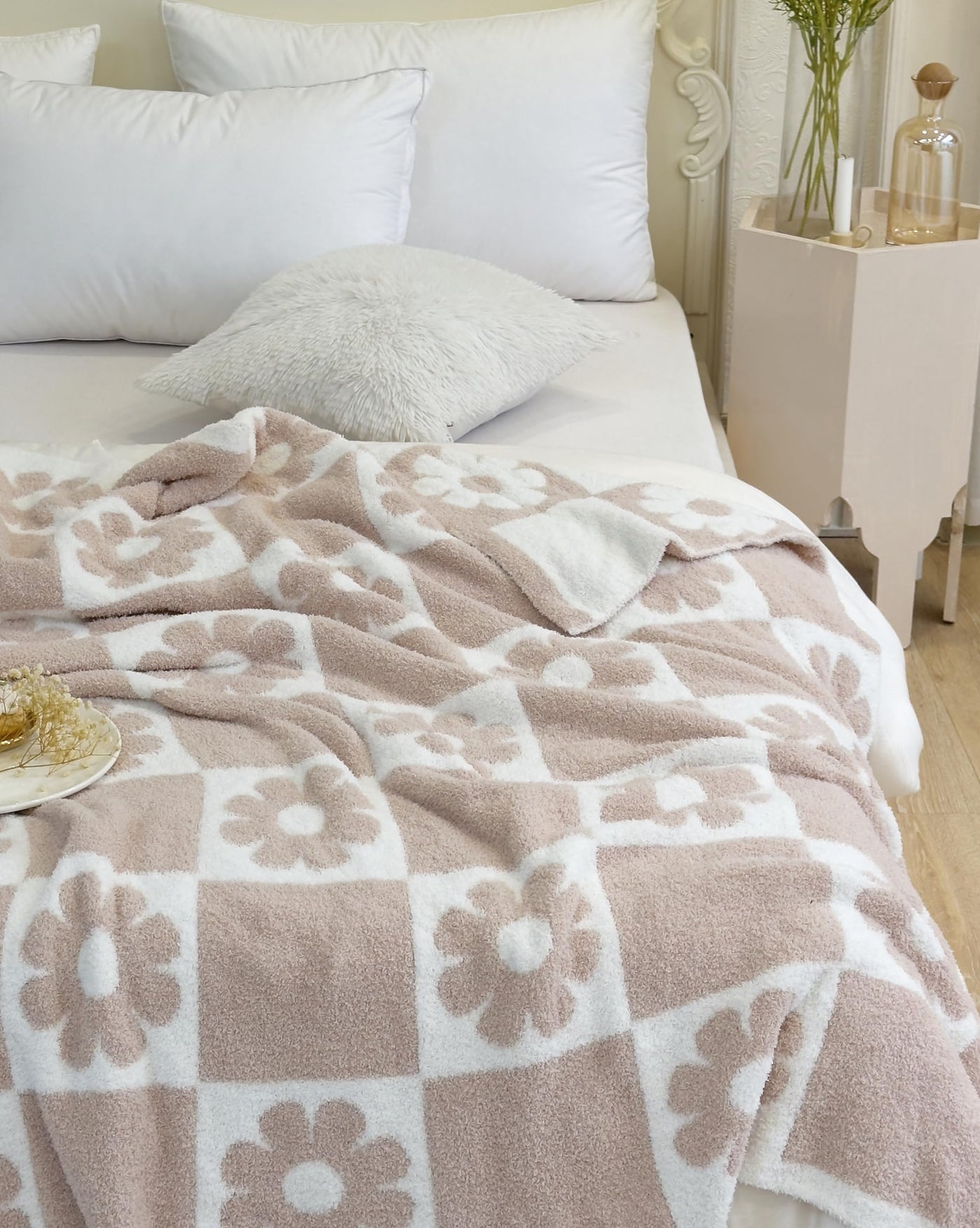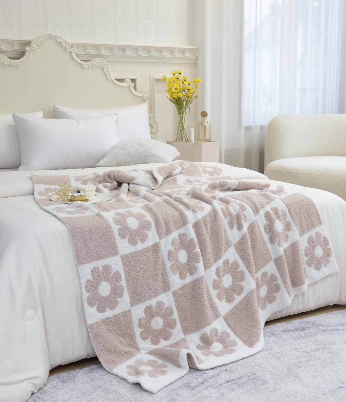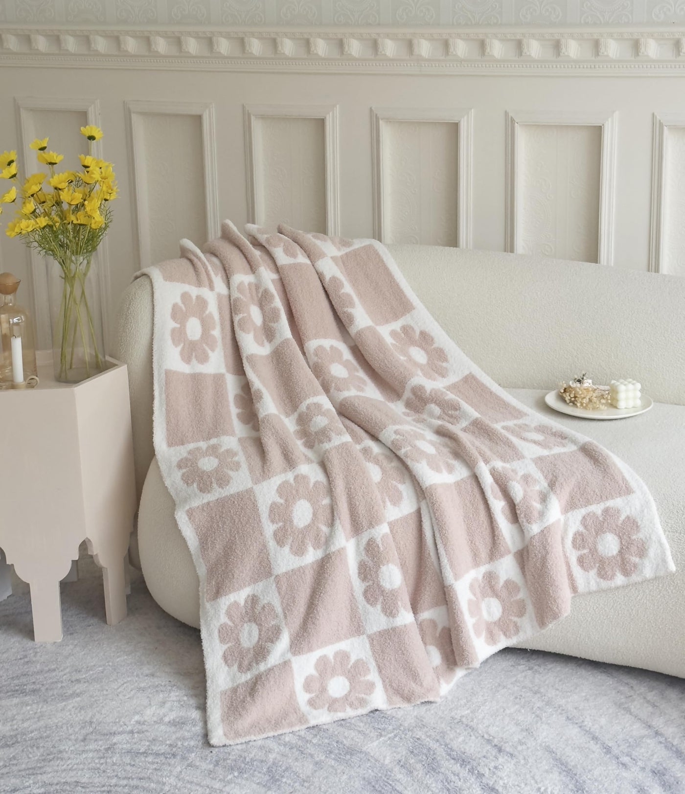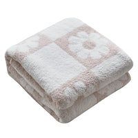 Ultra Soft Cozy Checkered Sunflower Knitted Throw Blanket Fluffy Microfiber Checkerboard Bed Blanket Lightweight Both Sides Blan