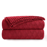 Wine Red Cotton Knit Throw Blanket For Couch Sofa Bed - Home Decorative Soft Cozy Sweater Woven Fall Cable Oversize Knitted Blan
