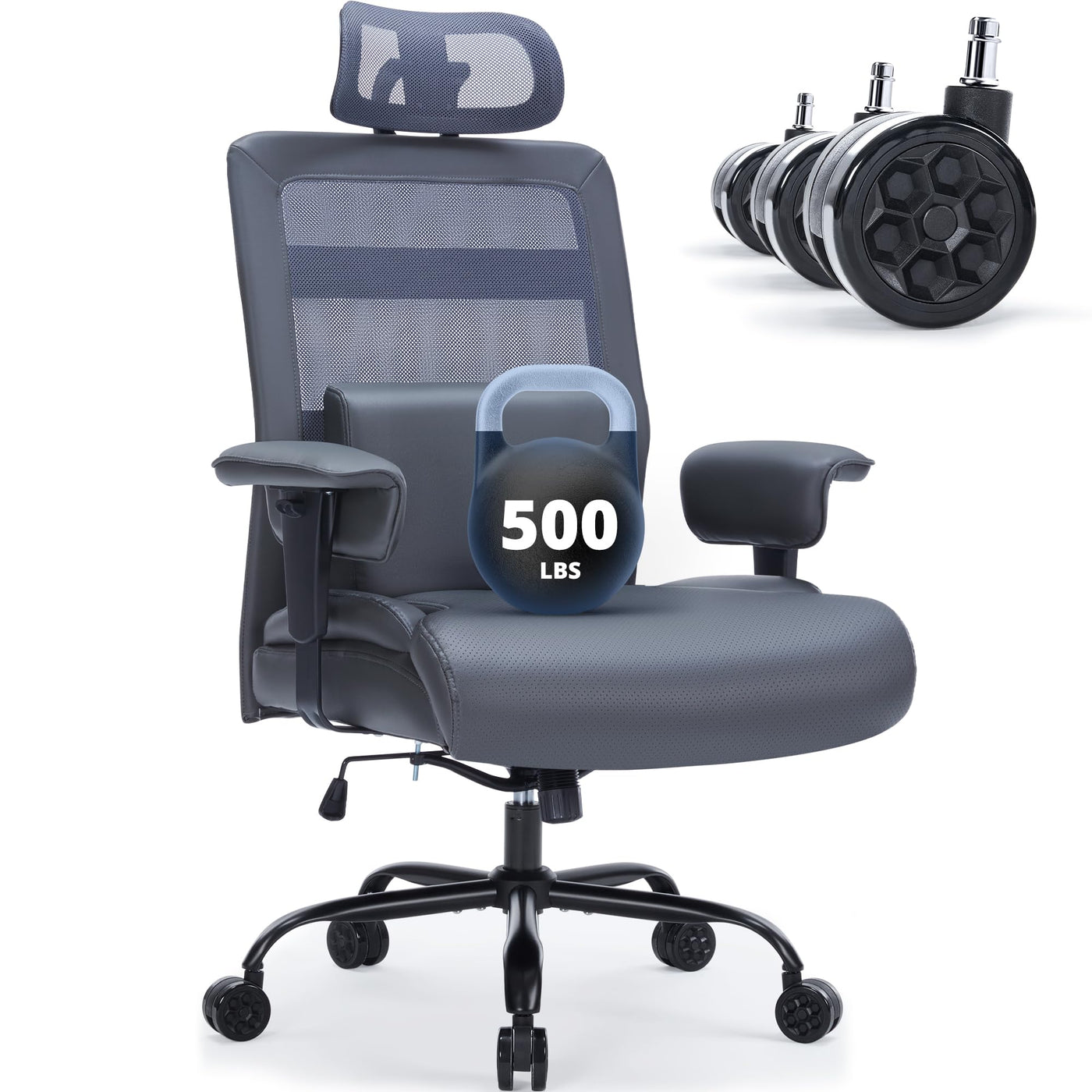 500 Lbs Big And Tall Office Chair, Plus Size Computer Chair With Extra Wide Seat Large Wheels, Heavy Duty Executive Office Chair