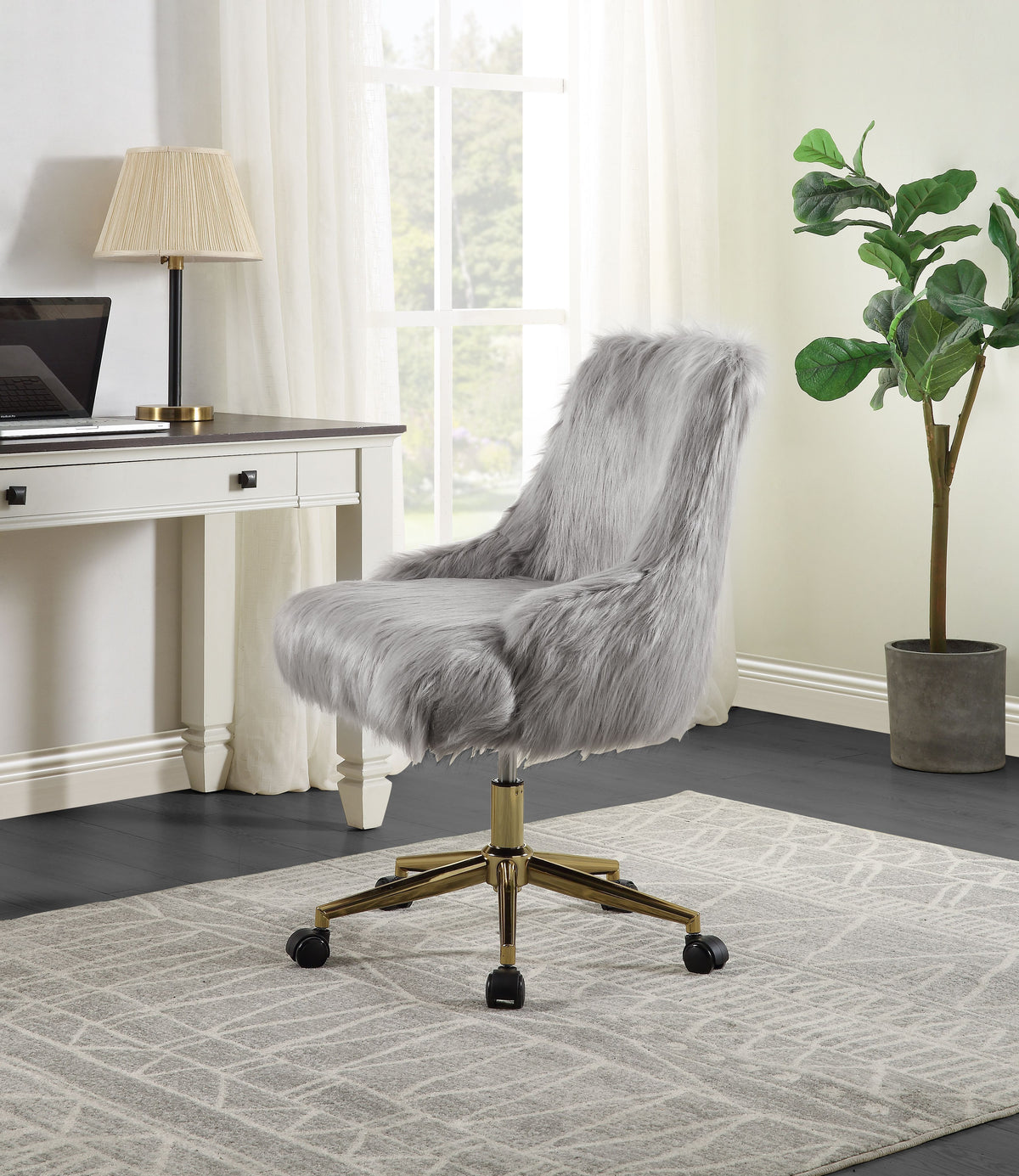 As beautifully designed as it is cozy, the Arundell II office chair is the perfect option to fit your style and space. Upholstered seat and back emphasize the lush, plush feel of faux fur. The modern metallic base features a swivel seat, adjustable lift, and caster wheels for multi-tasking in an office environment. Make your work area healthier, more positive with the Arundell II office chair.