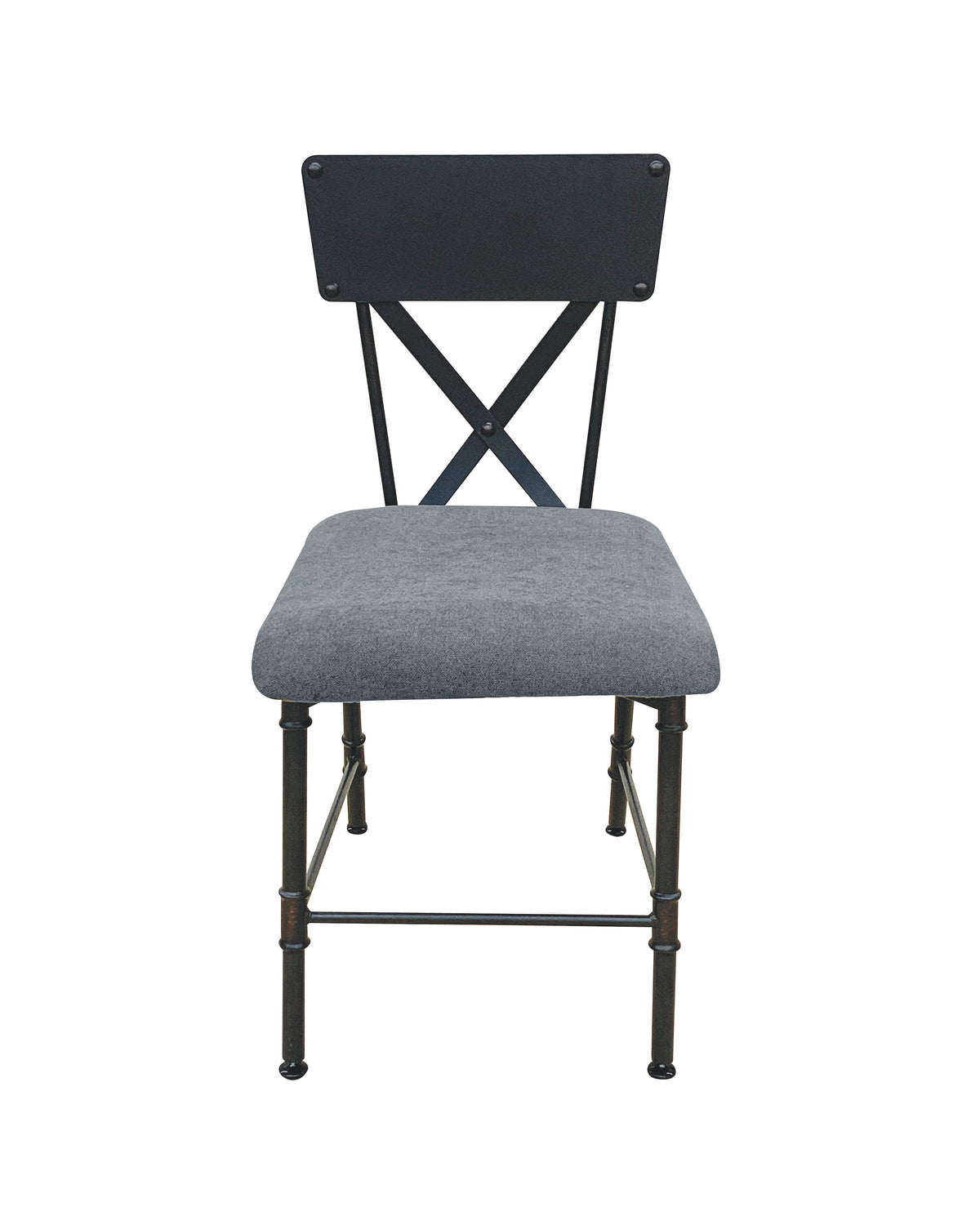 Simple, bold, and appealing, the Brantley Side Chair will give your space e a distinct look with rustic industrial style. It offers upholstered seat cushion to give your a comfortable support and mature gray fabric brings it an elegant touch. The metal frame with minimal detailing and gunmetal finish creates a rough and bold appearance for this chair. Add this stylish addition to complete your room decor,